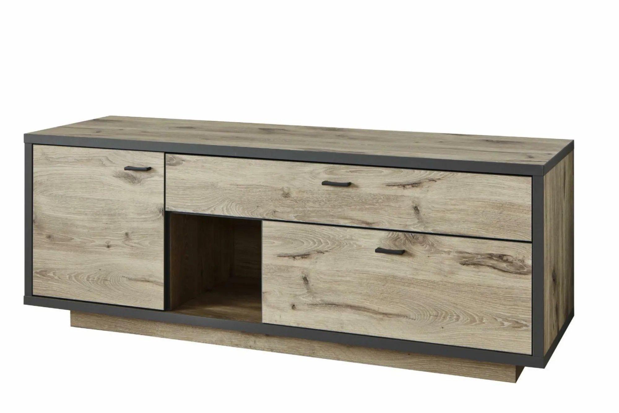 · mit einer Holztür, zwei Schub- kästen und einem offenem Fach