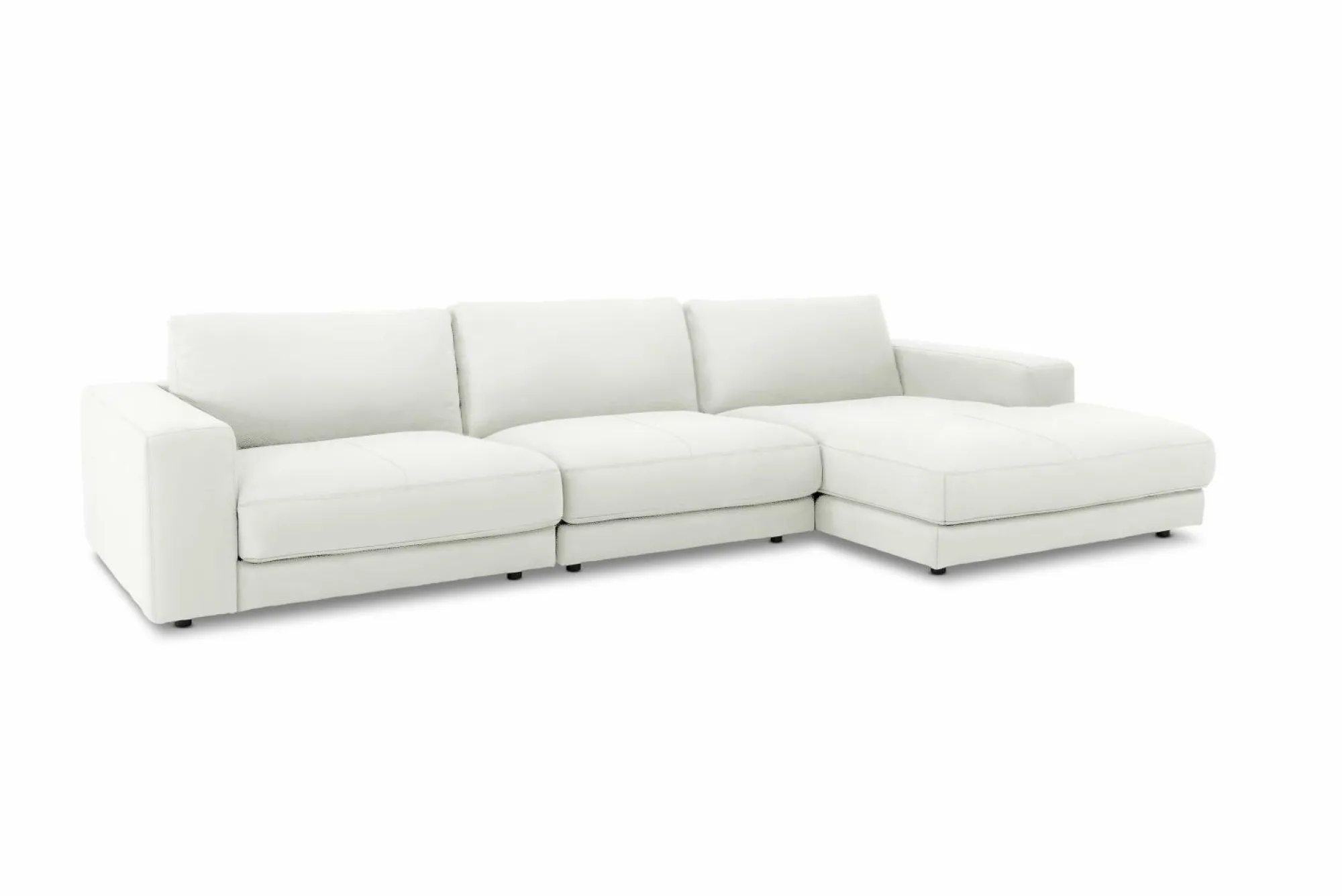 Schaffen Sie sich mit der stilvollen Polsterecke Cavalli Plus von CANDY Ihre ganz persönliche Wohlfühloase. Die moderne Polsterecke besteht aus einem 1,5 Sitzer medium mit Armlehne auf der linken Seite, einem 1,5 Sitzer medium ohne Armlehne und einem Longchairelement auf der rechten Seite. Alle Elemente, sowie die drei bequemen Rückenkissen sind mit dem geschmeidigen und hochwertigen Leder Life Line bezogen und in zahlreichen Farben erhältlich. Die Wohnlandschaft steht sicher auf ca. 5 cm hohen Gleitern. Die Sitztiefe beträgt ca. 84 cm und die Sitzhöhe liegt bei 44 cm. Durch das klassische und zeitlose Design wird die Polsterecke in jedem Wohnkonzept zum besonderen Herzstück des Raumes. Auf Wunsch sind ein passender Hocker und Kissen separat erhältlich. Es handelt sich um ein sperriges Möbelstück.