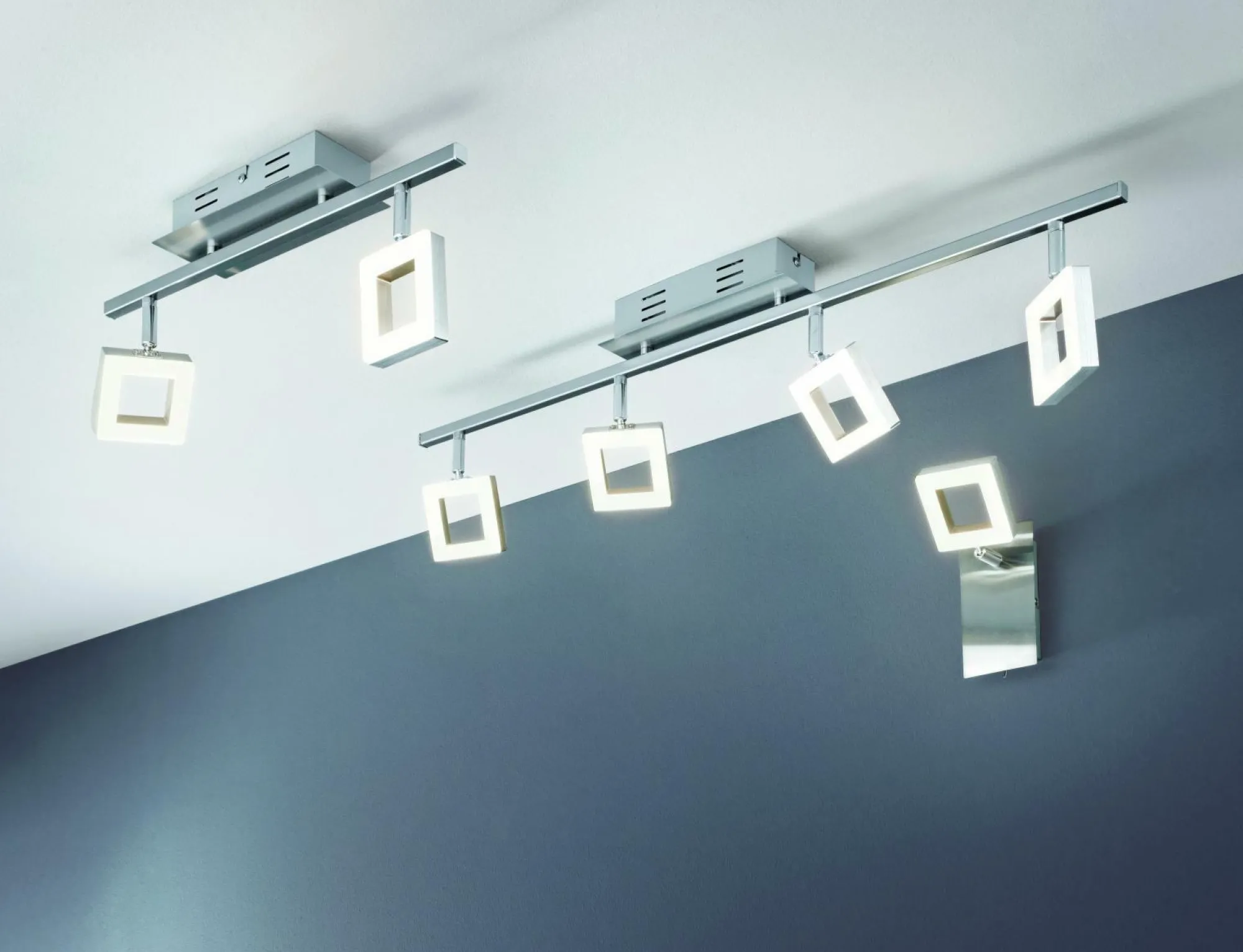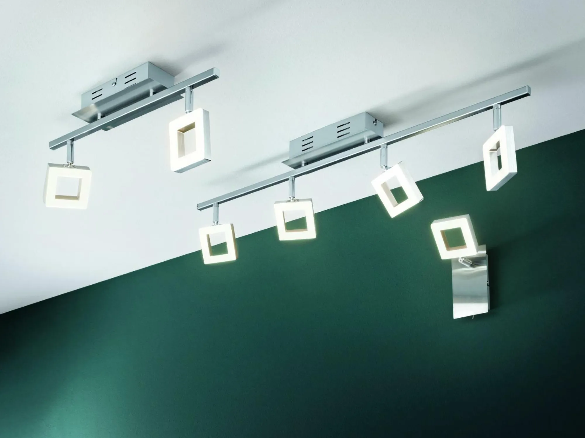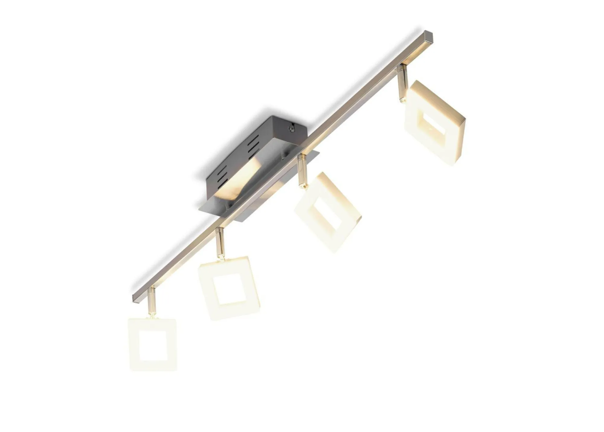 Mit der Spotleiste Real erhalten Sie ein modernes Element für Ihren Wohnbereich. Die schicke Leuchte aus Aluminium und Acryl besteht aus vier Leuchten, die ein warmes Licht verbreiten. In verschiedensten Räumen kommt die Spotleiste gut zur Geltung, da sie durch das Licht für ein angenehmes Ambiente sorgt.