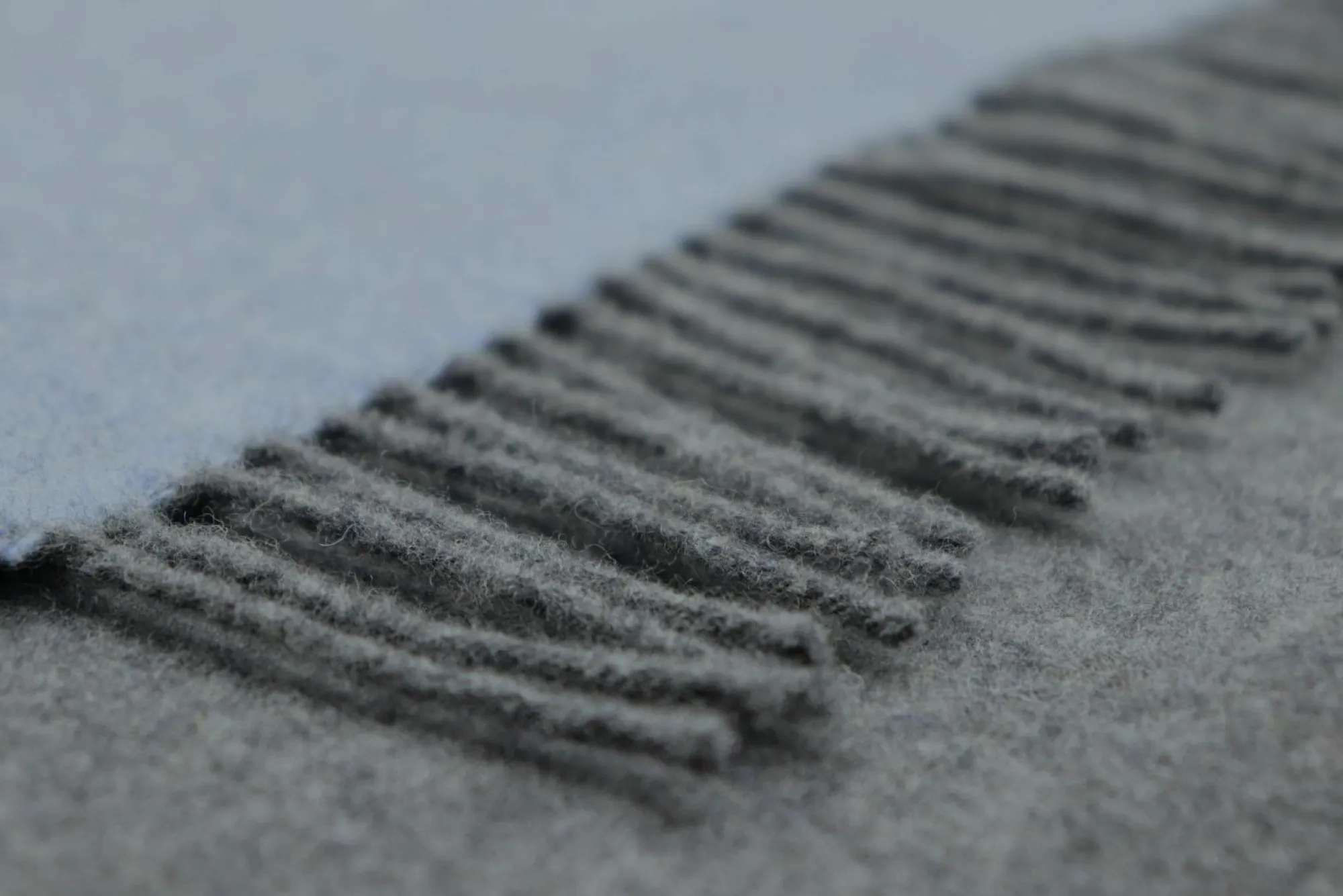 · Dieses luxuriöse Kaschmir-Plaid edlem Wolle-Kaschmir-Mix vereint Eleganz und Gemütlichkeit mit einem modernen Doubleface-Look in angesagtem Pastellblau. Die Fransen sind in derselben Farbe gehalten wie die graue Rückseite. Das hochwertige, zweifarbige Plaid setzt besondere Akzente in der Einrichtung und wärmt wunderbar.