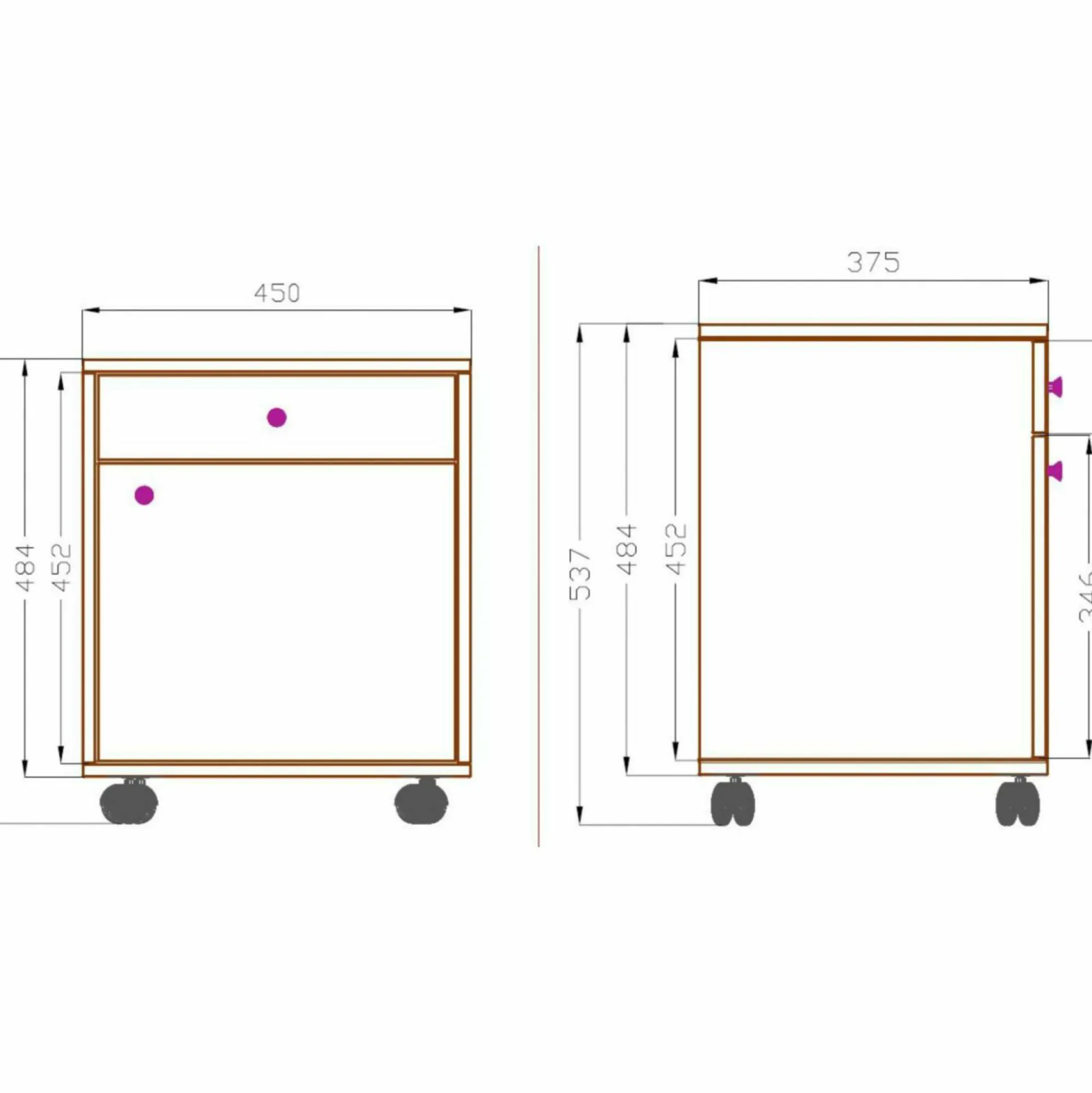 · 1 Tür + 1 Schubkasten