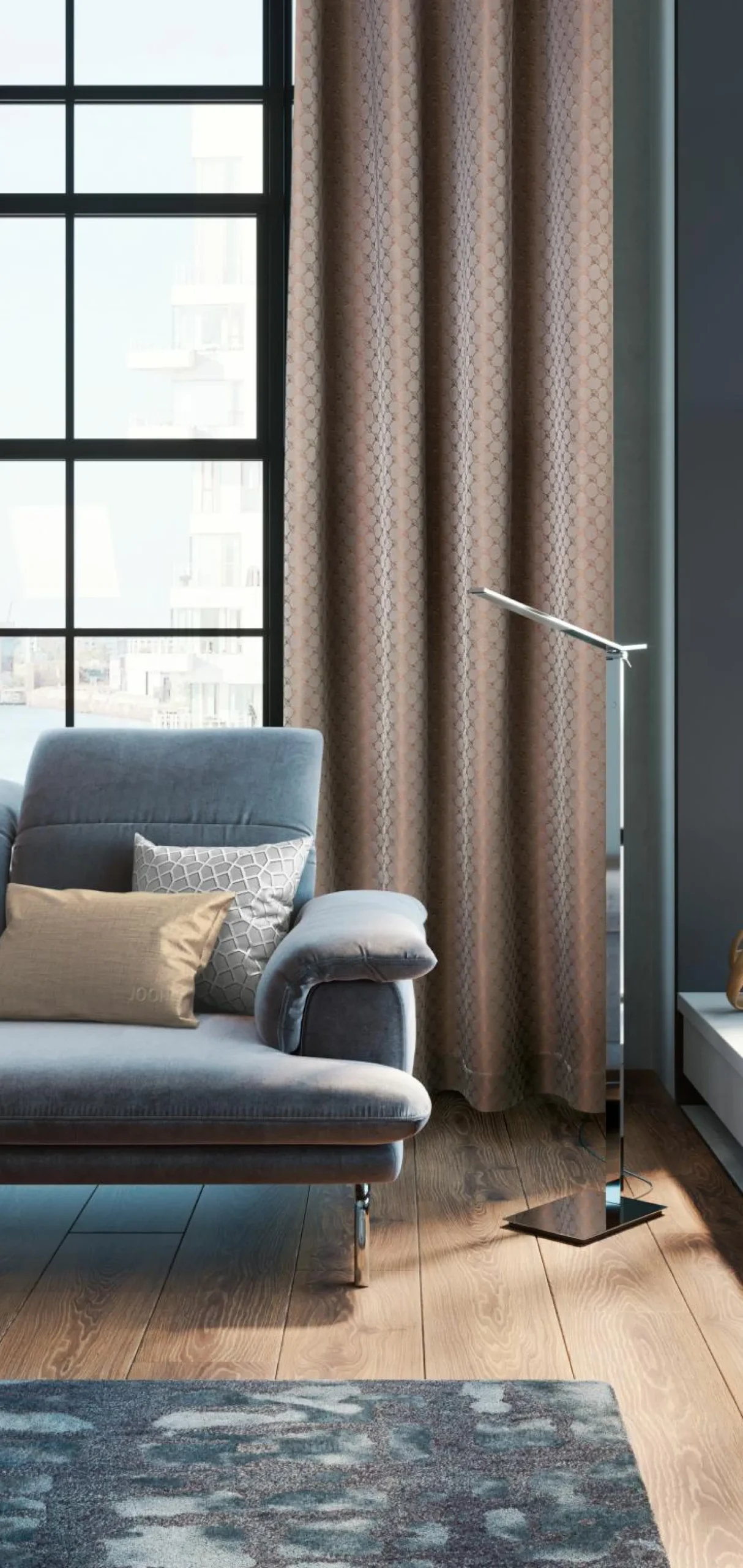 · Edler Ösenvorhang der JOOP! Living,unifarbener Webjaquard mit JOOP! Kornblumenmuster
