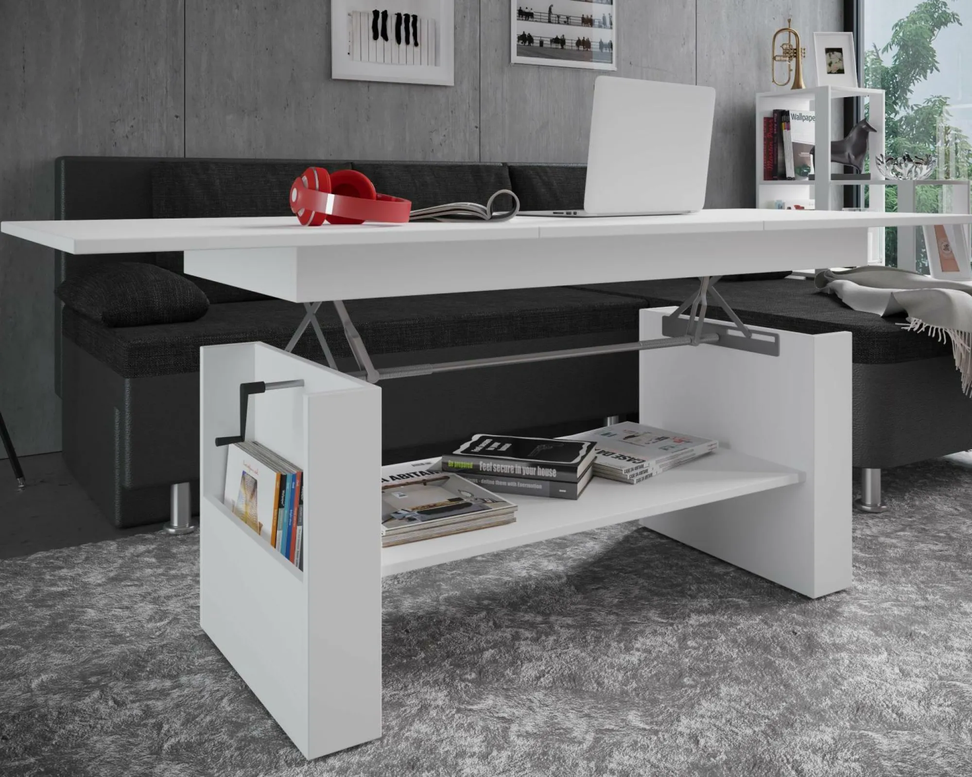 · Höhenverstellbarer Couchtisch durch Kurbel-System