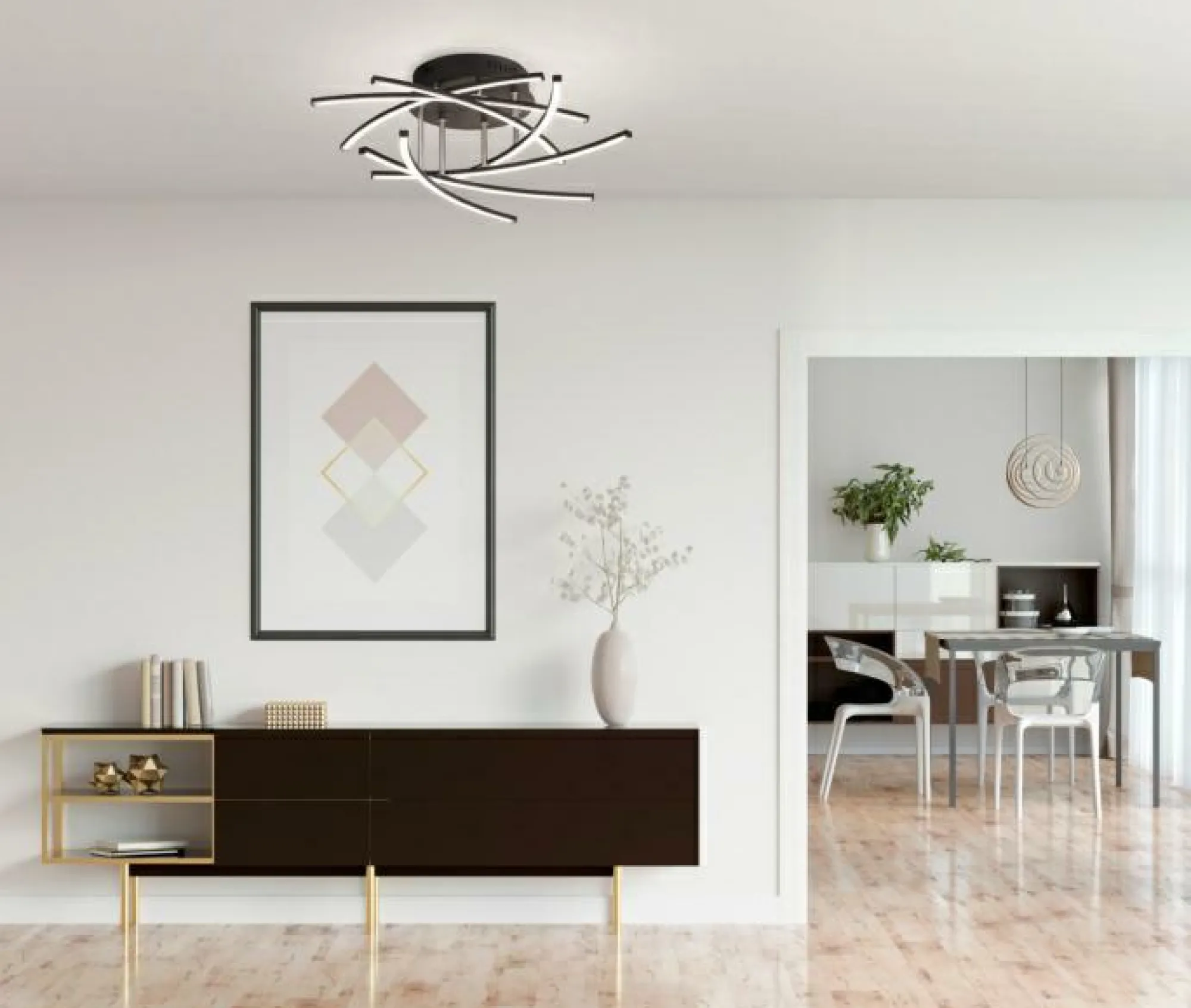 Die Deckenleuchte CROSS verbindet funktionale Beleuchtung mit ansprechendem Design. In dieser Deckenlampe kommen alle Qualitäten und Highlights der Marke FISCHER & HONSEL zusammen. Das Modell CROSS fügt sich mit seinem tollen Stil perfekt in jede Einrichtung ein und schafft eine wohlige Atmosphäre. Es stellt eine Dimmfunktion für eine individuelle Regulierung der Helligkeit nach Ihren Wünschen zur Verfügung und besteht aus Metall. Die Deckenleuchte wurde für die Aufnahme von Leuchtmitteln mit einem FEST-Sockel konstruiert. Das Modell CROSS sorgt für eine tolle Optik und verleiht Ihren Wohnräumen zusätzlich Atmosphäre. Ihre Einrichtung wird durch diese Lampe, für die schnell der richtige Platz gefunden ist, ergänzt. Mit der Deckenlampe können Sie das Erscheinungsbild Ihres Wohnbereiches weiter verschönern.