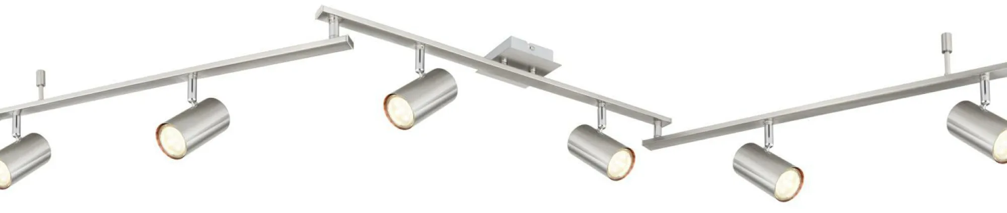 · Dieser Deckenstrahler aus der Robby-Serie (180×10 cm) überzeugt durch sein elegantes Design aus nickel-mattem Metall. Er besteht aus drei Metallstäben, an denen jeweils zwei schwenkbare, von Metall ummantelte GU10-Fassungen fixiert sind. Diese können Sie mit passenden Leuchtmitteln Ihrer Wahl bestücken, wodurch Sie die Möglichkeit habe, Lichtfarbe und Helligkeit nach Ihren Vorstellungen zu bestimmen. Durch weitere Artikel der gleichen Serie können Sie Ihre Innenräume stilvoll aufwerten.