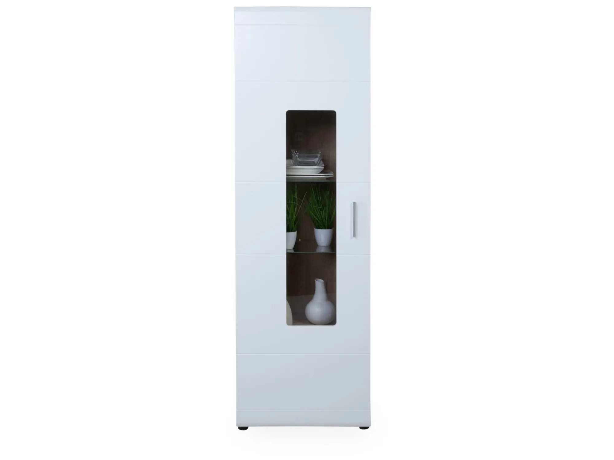 Die Vitrine WANAKA von HARPER stellt eine Fusion aus modernem Design und natürlichen Akzenten dar. Die weiß matte Front und der Korpus in Eichen Nachbildung verleihen Ihrem Raum einen zeitlosen Charme. Ausgestattet mit einer Holztür mit Klarglasausschnitt, bietet sie eleganten Stauraum und Präsentationsfläche für Dekoratives. Dank der Softclose-Funktion schließt die Tür leise und sanft. Die Griffe aus silbernem Kunststoff runden das stilvolle Erscheinungsbild ab. Auf Wunsch können Sie Beleuchtung hinzufügen, um für eine stimmungsvolle Umgebung zu sorgen. Entdecken Sie weitere Artikel aus dem Wohn- und Speisezimmersystem WANAKA von HARPER und entwickeln Sie ein einheitliches Einrichtungskonzept für Ihr Zuhause.