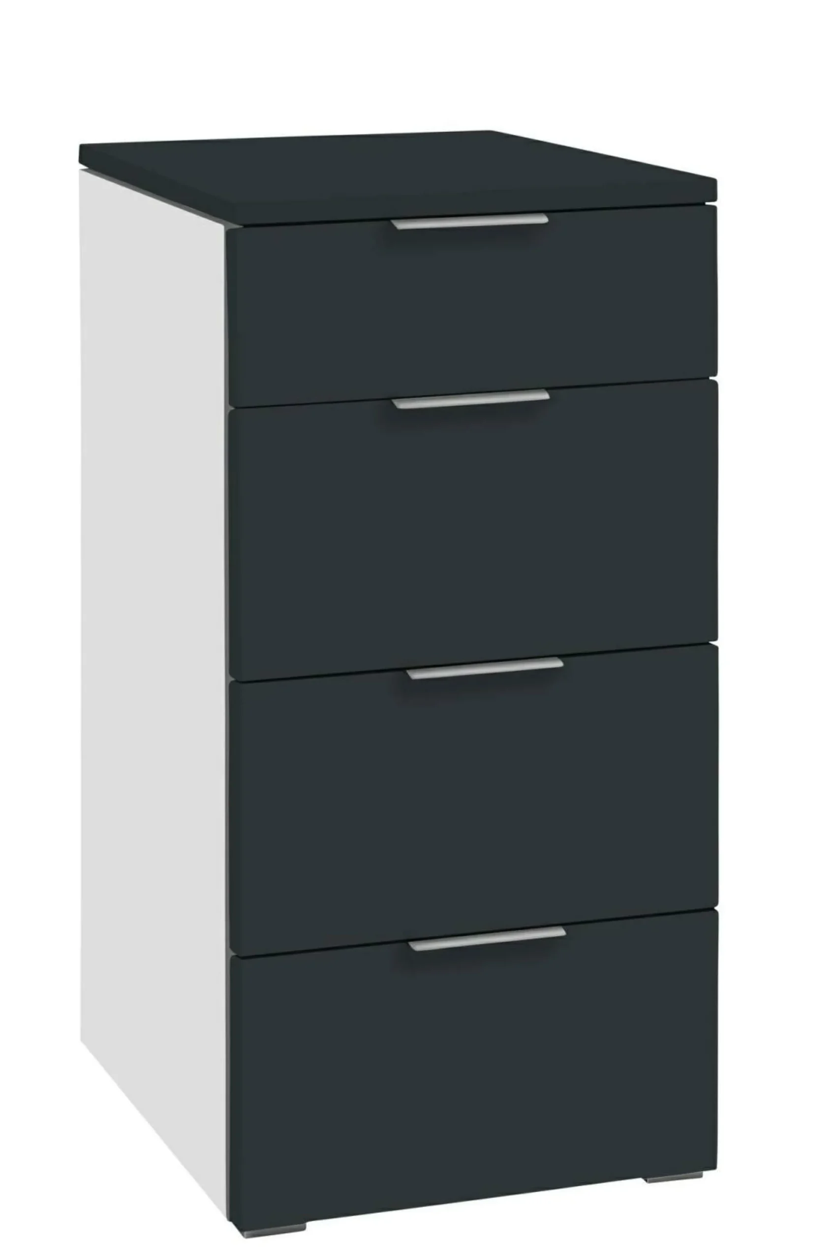· Kommode mit 4 Schubladen (gedämpfter Selbsteinzug) mit je einem Stauraum von 38x39x8 cm (1x) und 38x39x13 cm (3x).