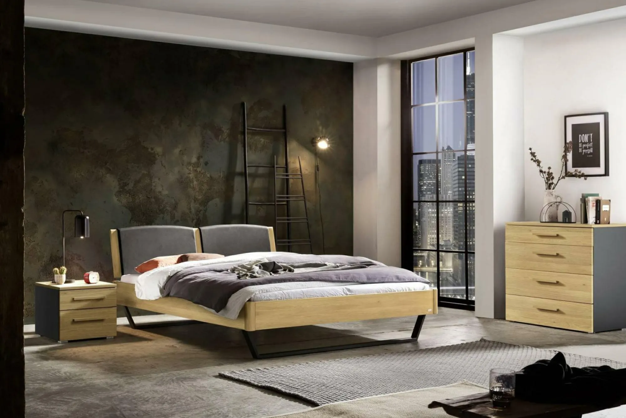 · Nachttisch mit 2 Schubladen (gedämpfter Selbsteinzug) mit je einem Stauraum von 38x39x8 cm und 38x39x13 cm.