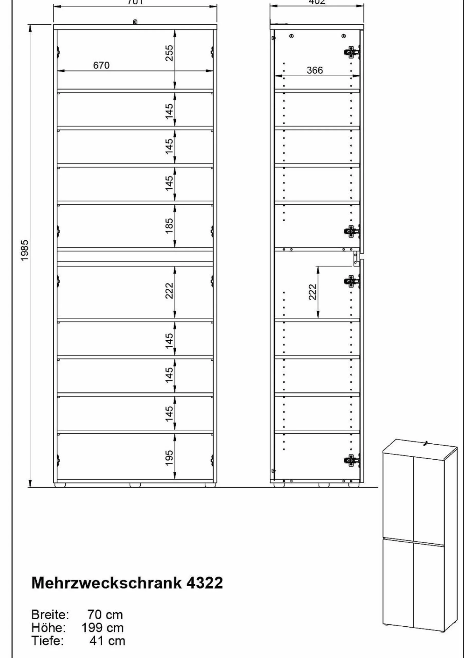| Abmessung: | BHT 70x199x41 cm |