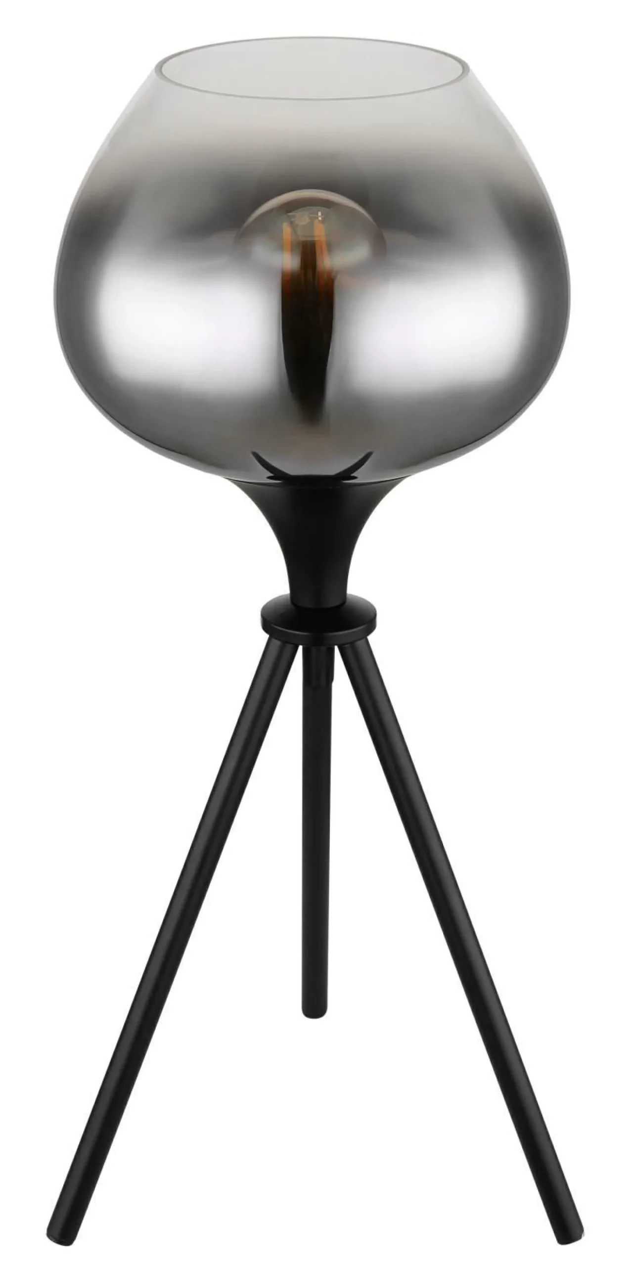 · Diese moderne Tischleuchte begeistert durch ein tolles Design. Aus einem 45 cm langen Dreibein ragt eine E27 Fassung an dieser sich ein formschöner rauchfarbener Glasschirm (Ø 18 cm) befindet. Die E27 Fassung ermöglicht Ihnen bis zu einer maximalen Leistung von 40 Watt, selbst über Lichtfarbe und Helligkeit zu bestimmen. Aufgrund von Langlebigkeit und Stromersparnis empfehlen wir LED Leuchtmittel.