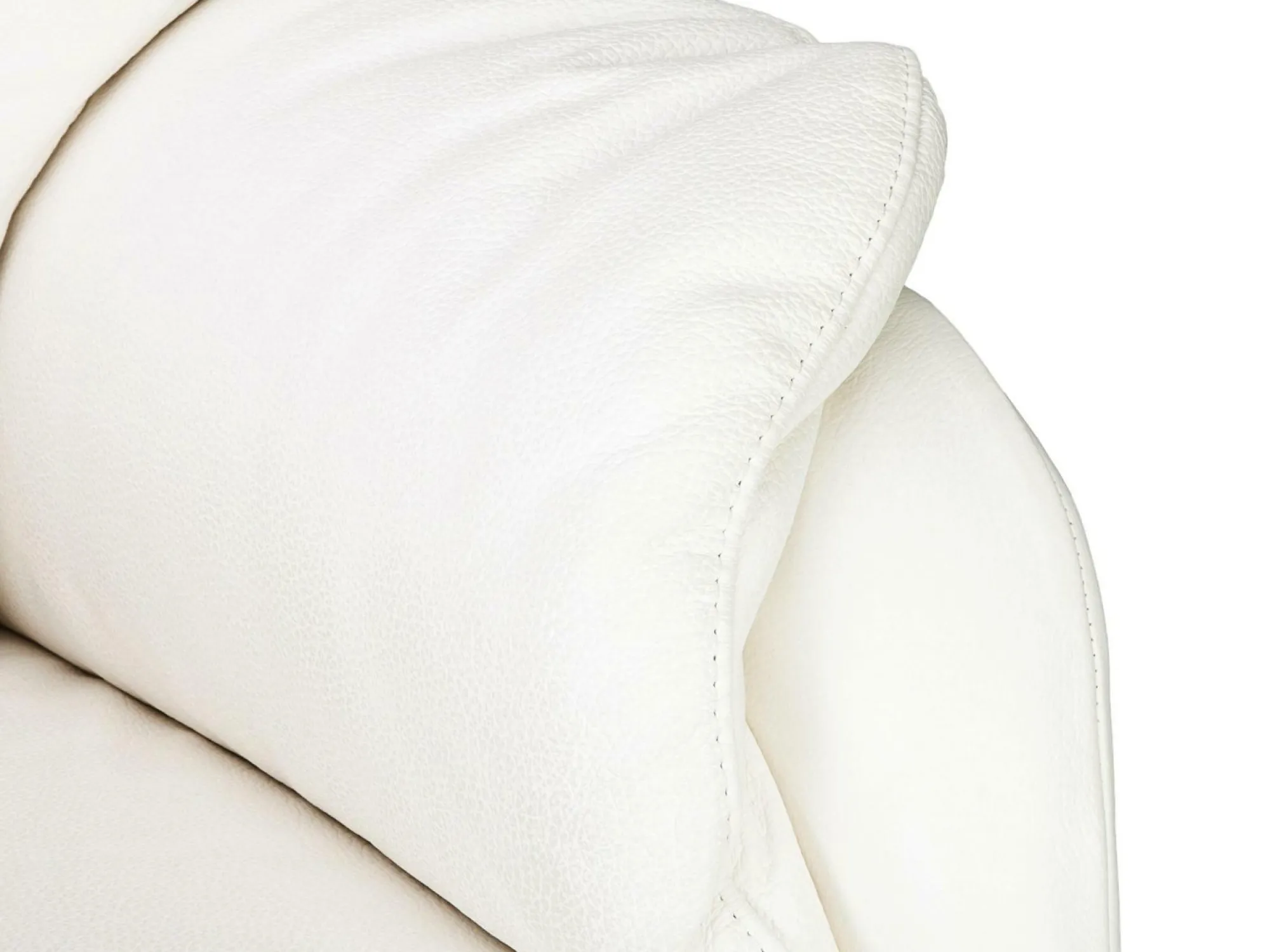 Das weiße Echt Leder unterstützt die einladende Wirkung des Sessels in der Variante small – 75 x 102 x 86 cm.