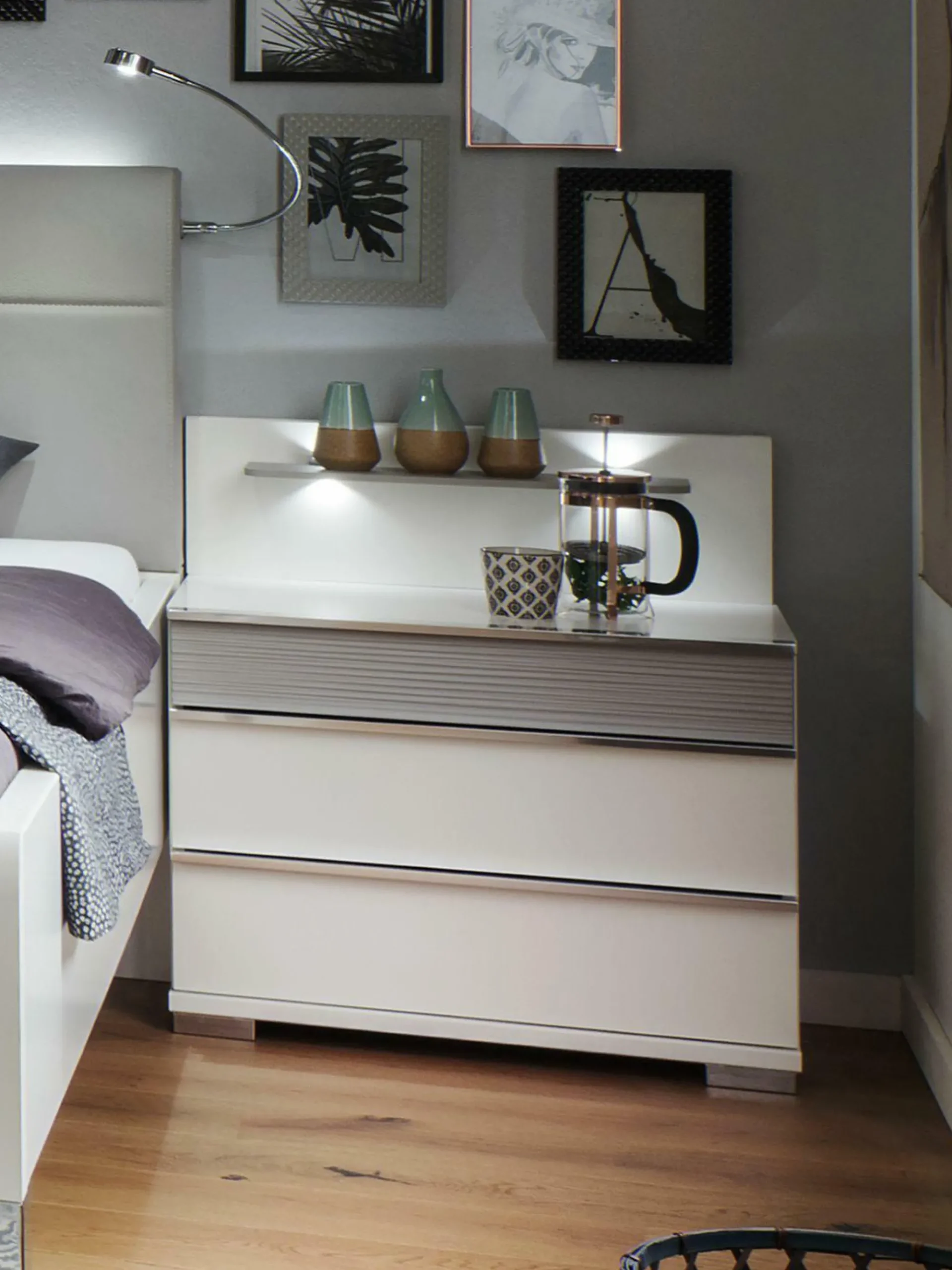 Paar 2,5 Schubkästen, Flachfüße in chrom 418 weiß, oberer Auszug in Struktur- — ohne Aufsatz-Paneele —