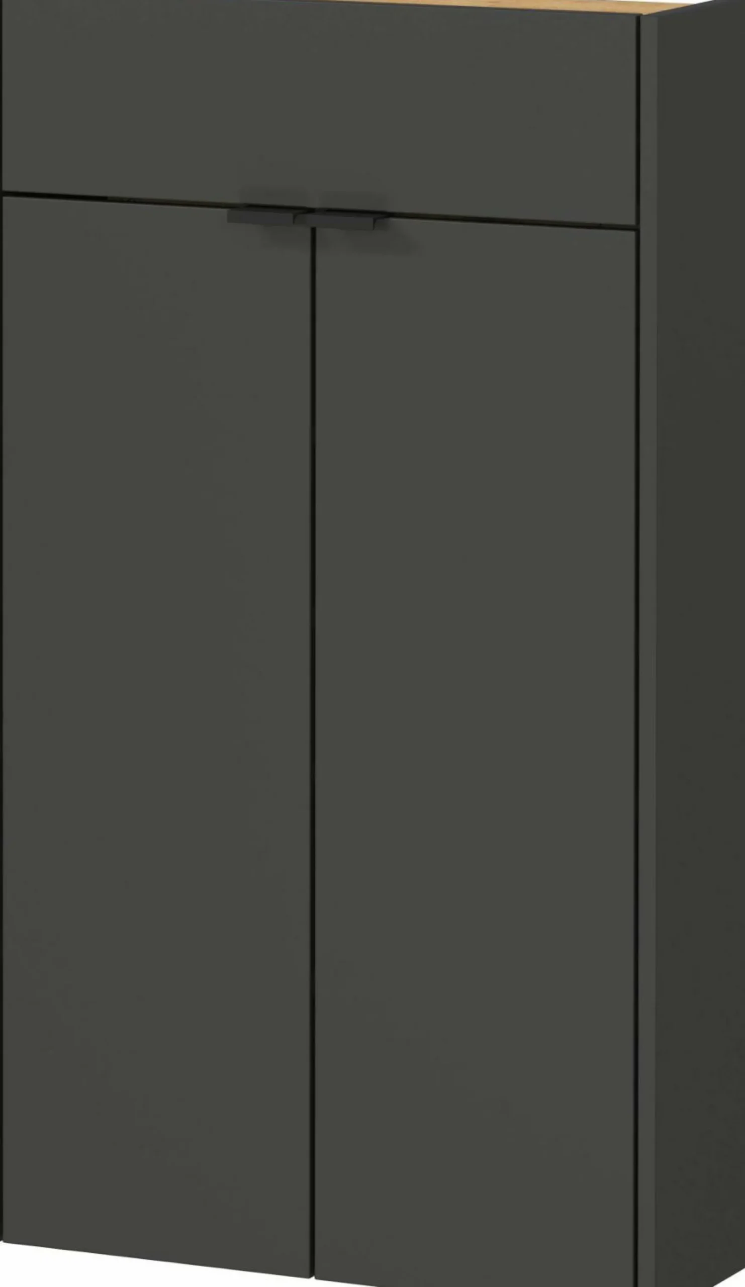 · Mehrzweckschrank mit einer Schublade (belastbar bis zu 5 kg) und zwei Türen, dahinter 4 Einlegeböden, 3 davon verstellbar (jeweils belastbar bis zu 7 kg), Oberboden belastbar bis zu 5 kg, Unterboden bis zu 7 kg, Oberboden, Einlegeböden und Rückwand in der Farbe Eiche, Rest in Graphit, 2 pulverbeschichtete Kantengriffe aus Metall in Schwarz, 4 schwarze Möbelgleiter aus Kunststoff, Platz für bis zu 10 Paar Schuhe, Melaminharzbeschichtung, ABS-Kanten, Türdämpfung, Schuhschrank mit geringer Tiefe (nur 19 cm tief), Stehende und hängende Montage möglich, Nachhaltige Verpackung, Made in Germany.