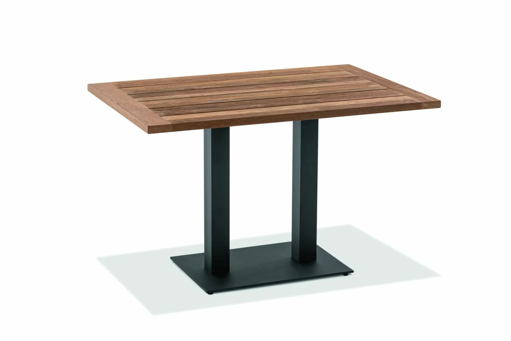 · Tisch BISTRO Tischplatte Teak recycelt, Gestell Doppelprofilsäule rechteckig Edelstahl pulverbeschichtet, Farbton anthrazit.