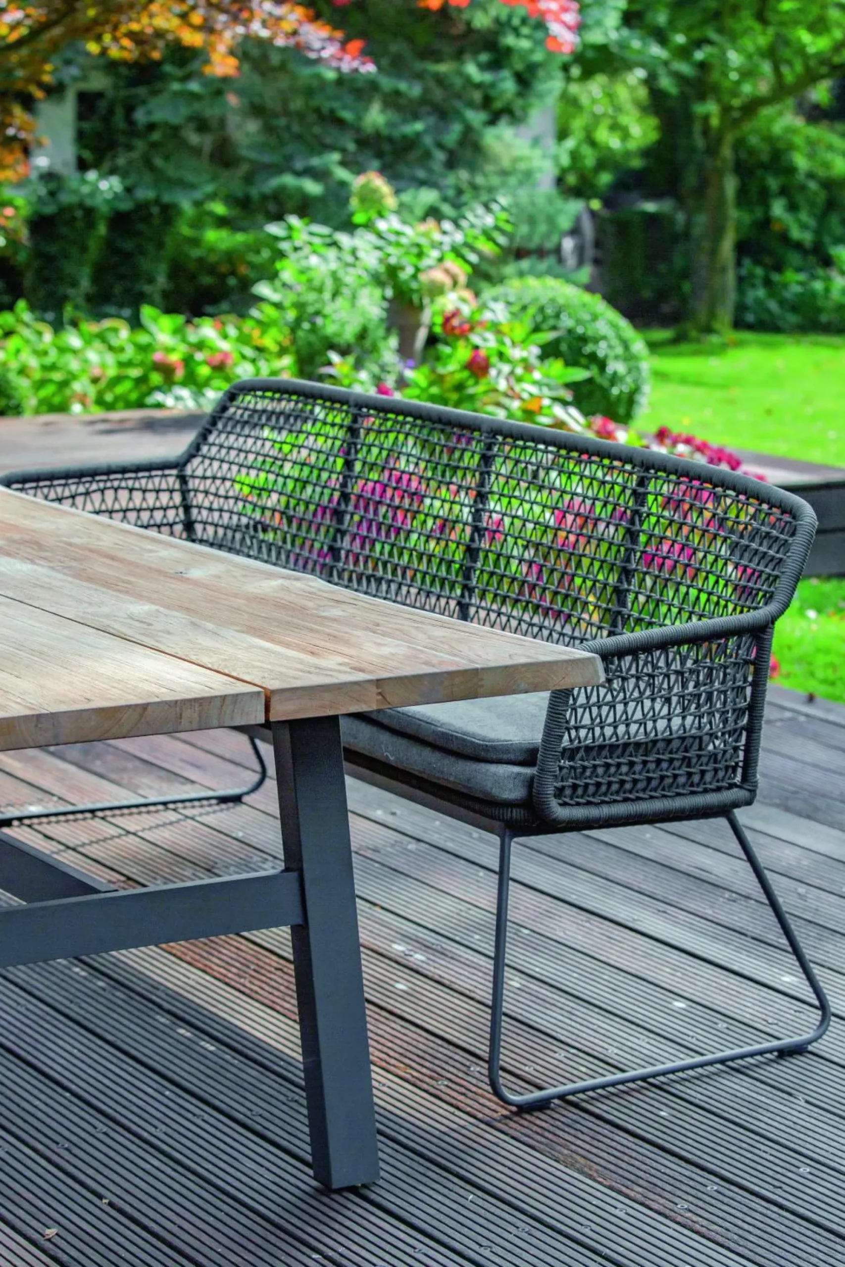 · Bank KUBU Sitzschale Kordelflechtung in Rautenoptik grau, inkl. Sitzkissen, Bezug Southend anthrazit, Gestell Aluminium pulverbeschichtet, Farbton anthrazit, 195,5×68,5 / 86 cm