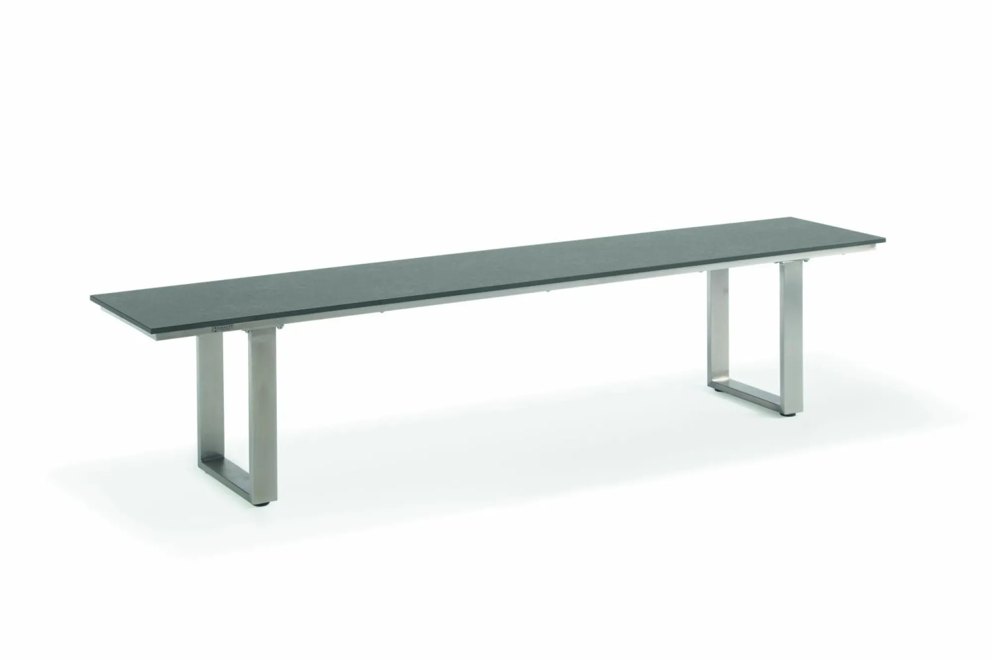 · Bank NEMO Sitzfläche HPL Granit, Gestell Profilkufe Edelstahl gebürstet.