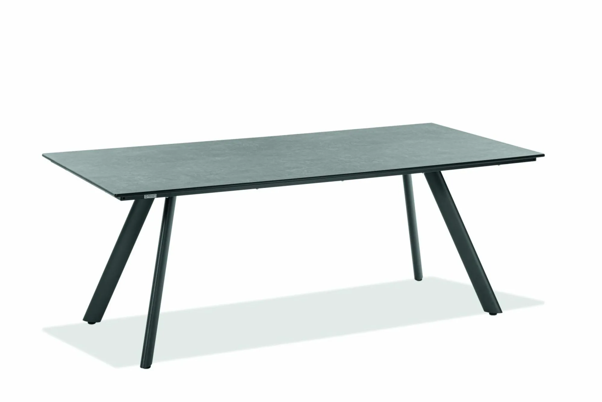 · Tisch NOAH Tischplatte HPL Beton, Gestell Stativprofil Aluminium pulverbeschichtet, Farbton anthrazit.