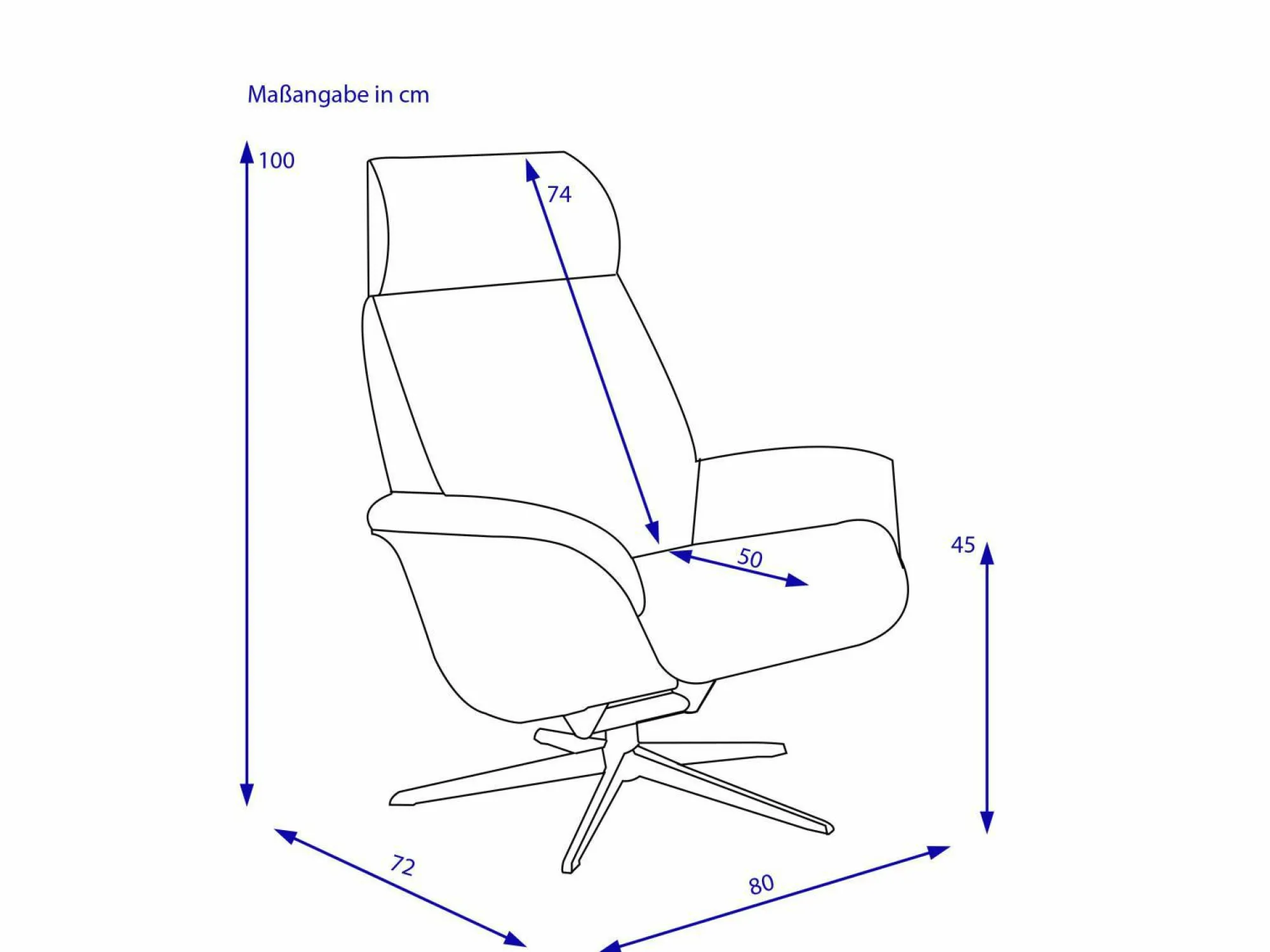· Ergonomie in cm: Breite – Höhe – Tiefe – Sitztiefe – Sitzhöhe ca. Medium:78 – 104 – 84 – 52 – 48 Large: 82 – 110 – 87 – 55 – 50, 7608