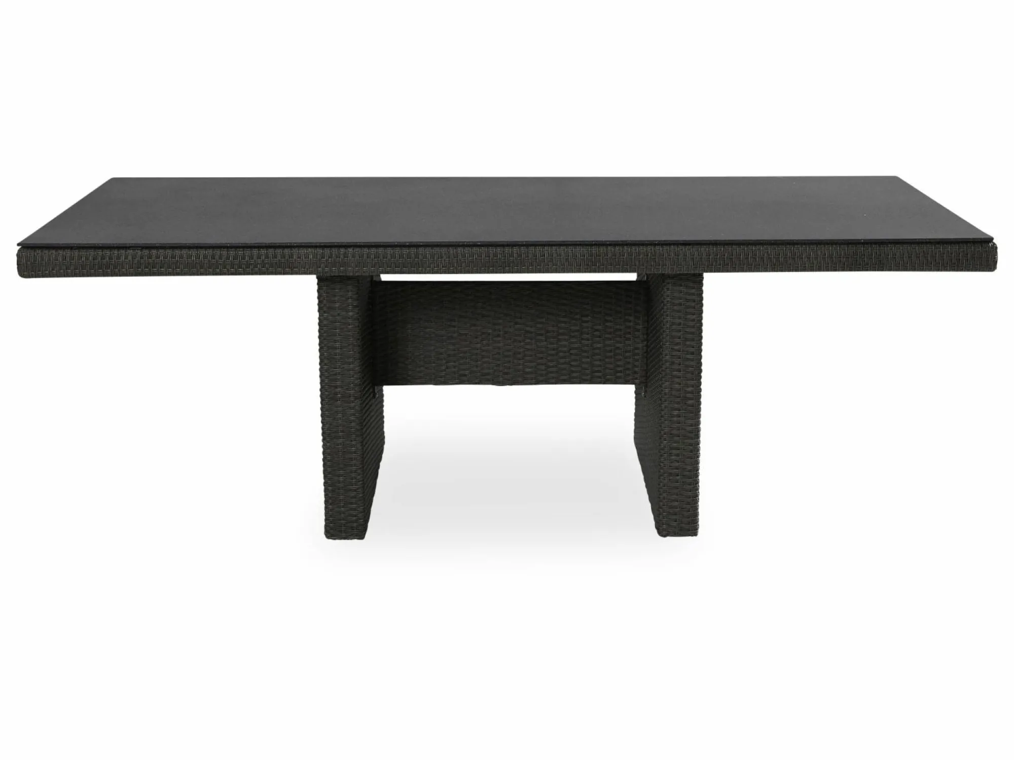Genießen Sie das moderne Design und die hohe Funktionalität des Gartentisches LONDON von outdoor. Die großzügige Tischplatte aus 3D-Glas verleiht Ihrem Außenbereich eine moderne Note und ist zudem äußerst langlebig. Das Gestell aus Aluminium und doppelt halbrundem Kunststoffgeflecht in elegantem Grau bietet nicht nur Stabilität, sondern auch eine ansprechende Ästhetik. Mit diesem Tisch können Sie gesellige Mahlzeiten im Freien genießen und gleichzeitig Ihren Außenbereich stilvoll aufwerten. Der Tisch lässt sich wunderbar mit anderen Möbelstücken kombinieren, um eine harmonische Gartenlandschaft zu schaffen. Entdecken Sie die Vielseitigkeit und die Qualität des witterungsbeständigen Gartenmöbelprogramms LONDON und verwandeln Sie Ihren Au0ßenbereich in eine stilvolle Wohlfühloase.