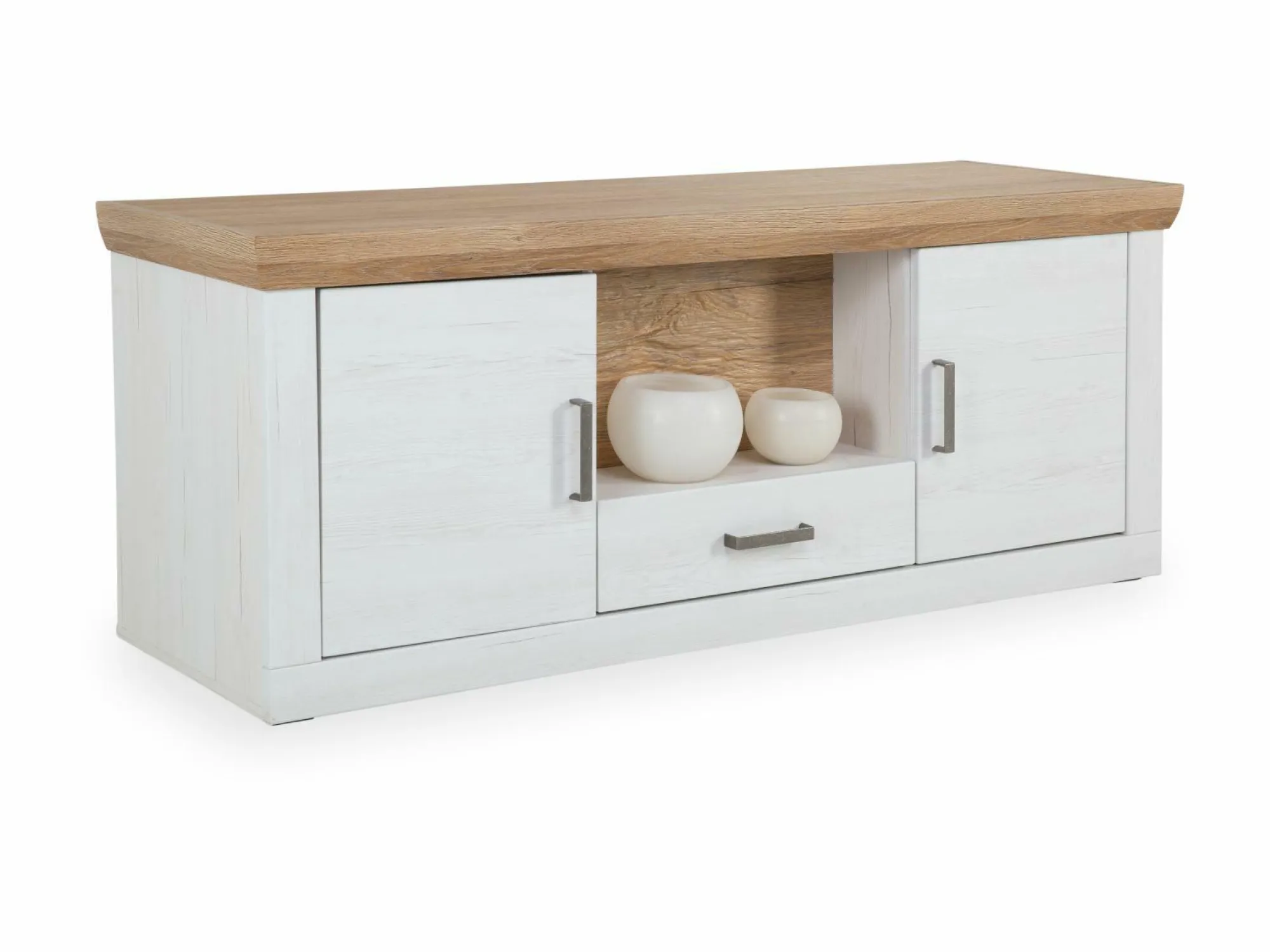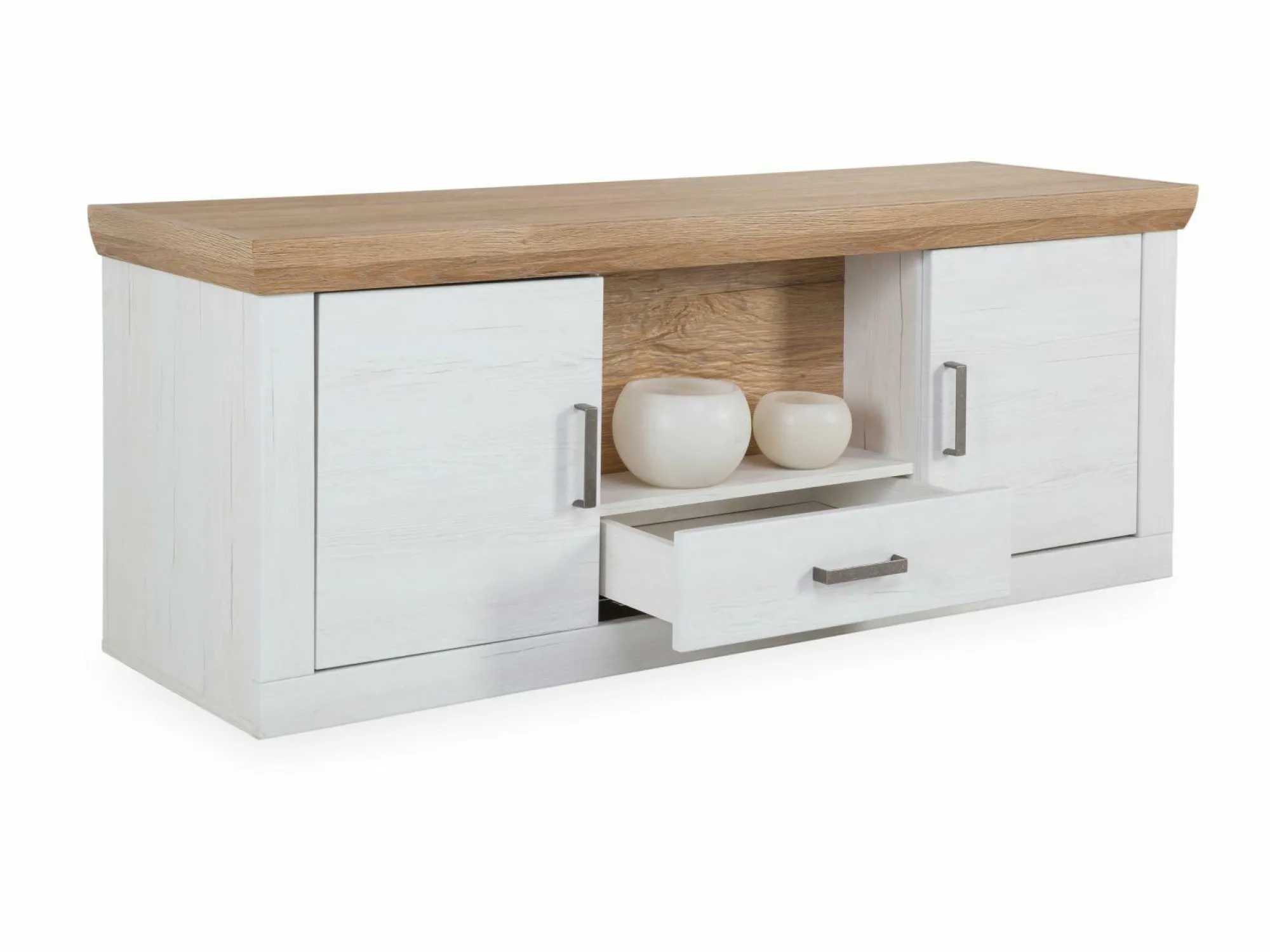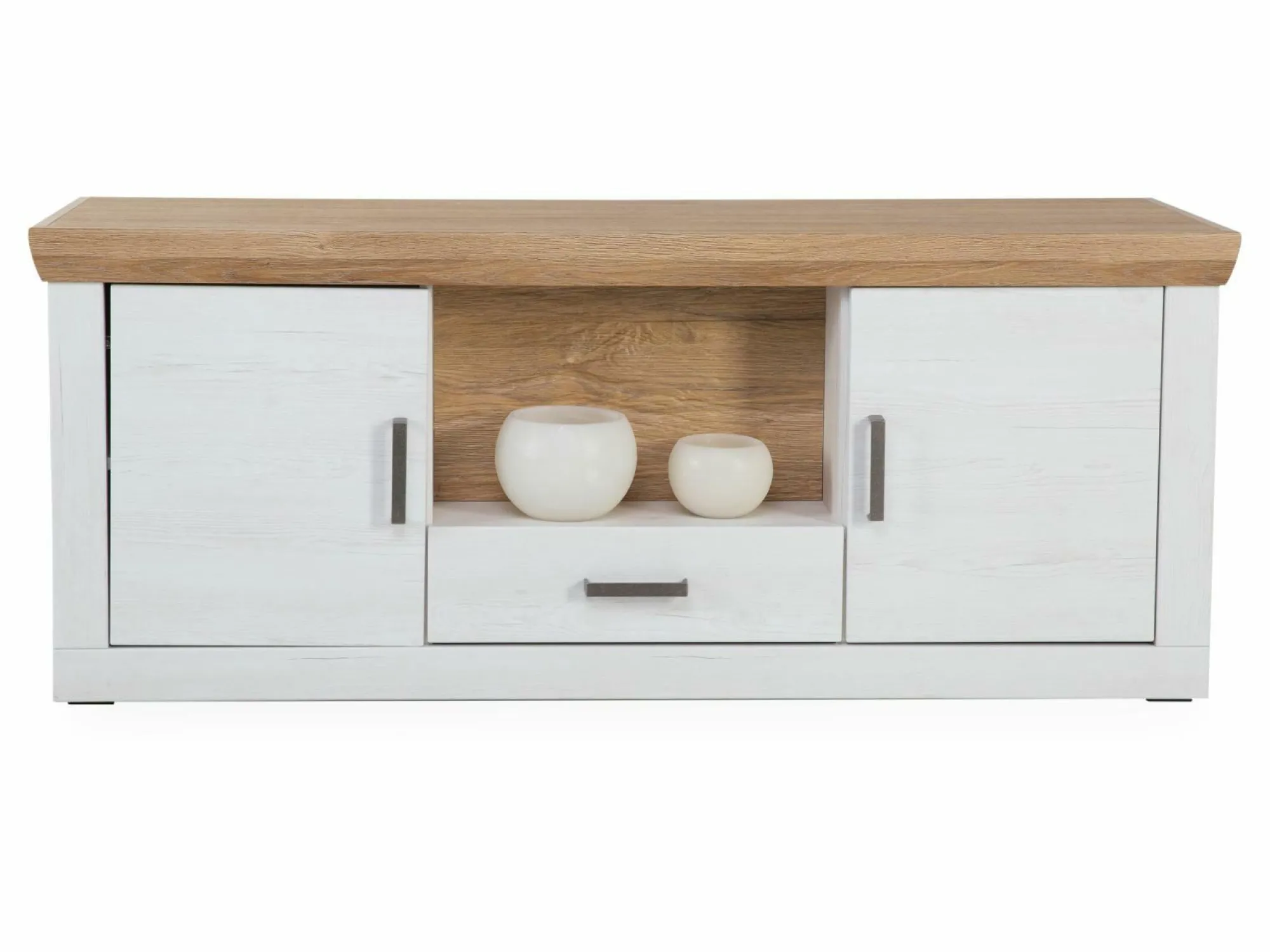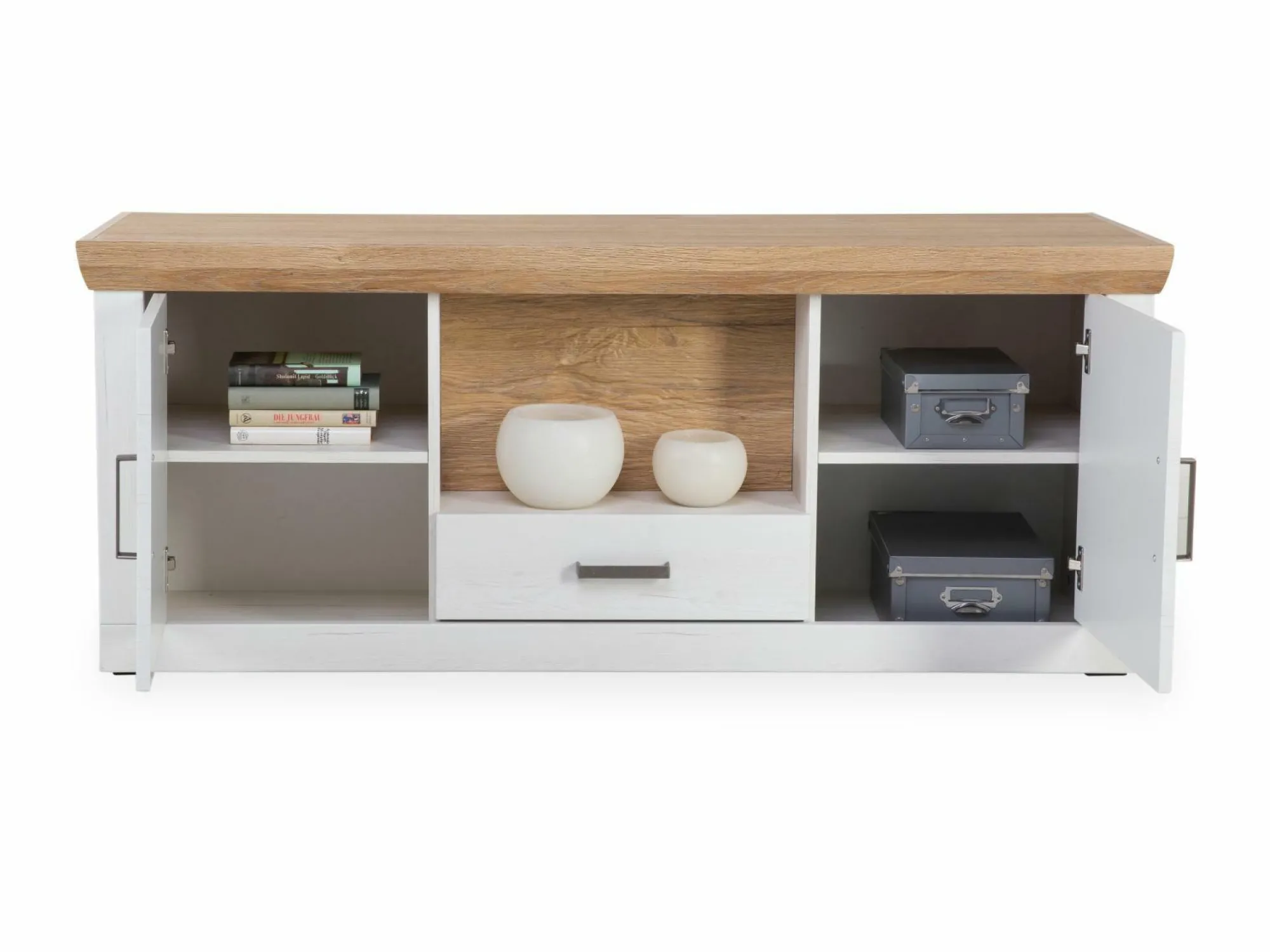 · 2 Türen (links und rechts), 1 Schublade und 1 offenes Fach