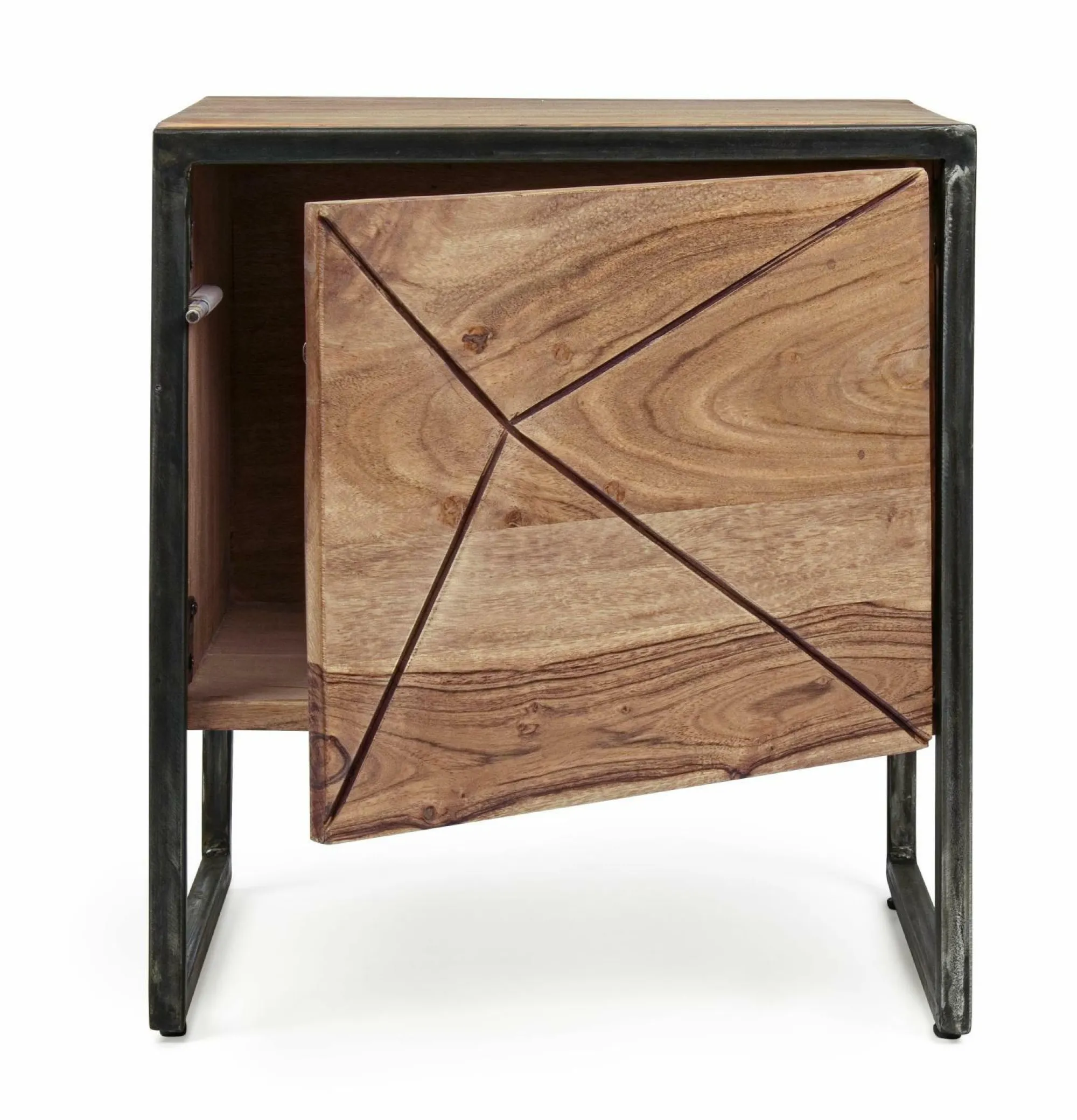 · Nachttisch aus Akazienholz mit Gestell aus pulverlackiertem Stahl und Oberflächenschutz Acryl. Rücken aus Sperrholz.