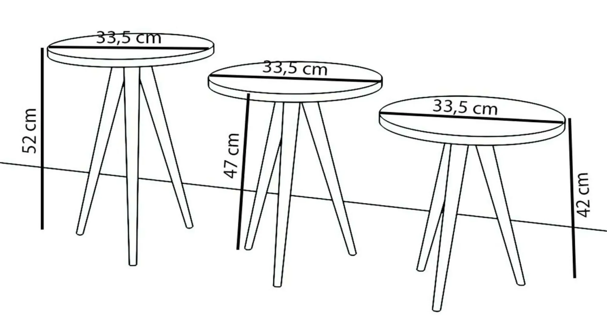 · Das Set besteht aus drei Einzeltischen, die individuell zusammen oder auch einzeln gestellt werden können.