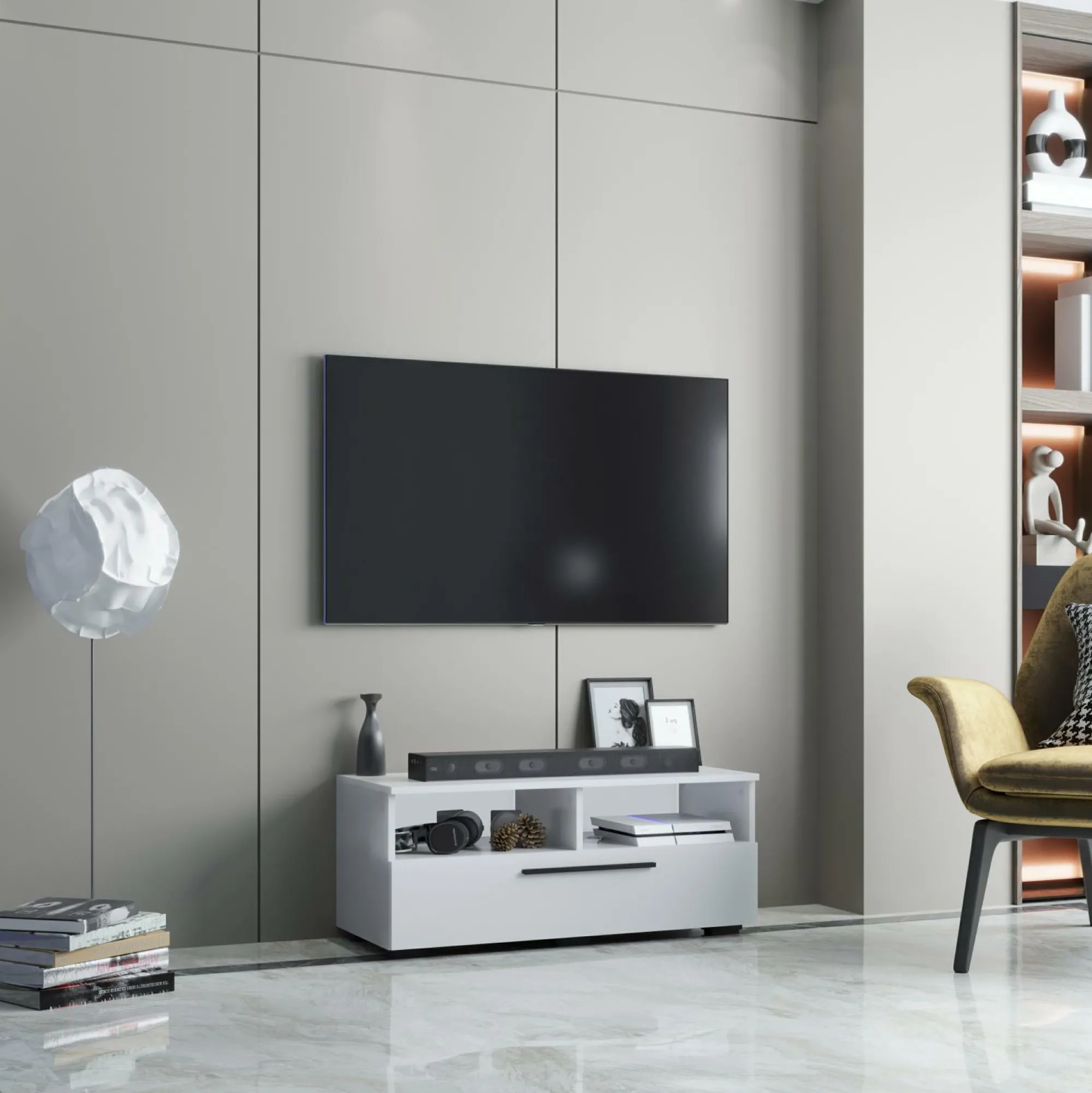 · Zwei offene Fächer z.B. für Audio-Geräte