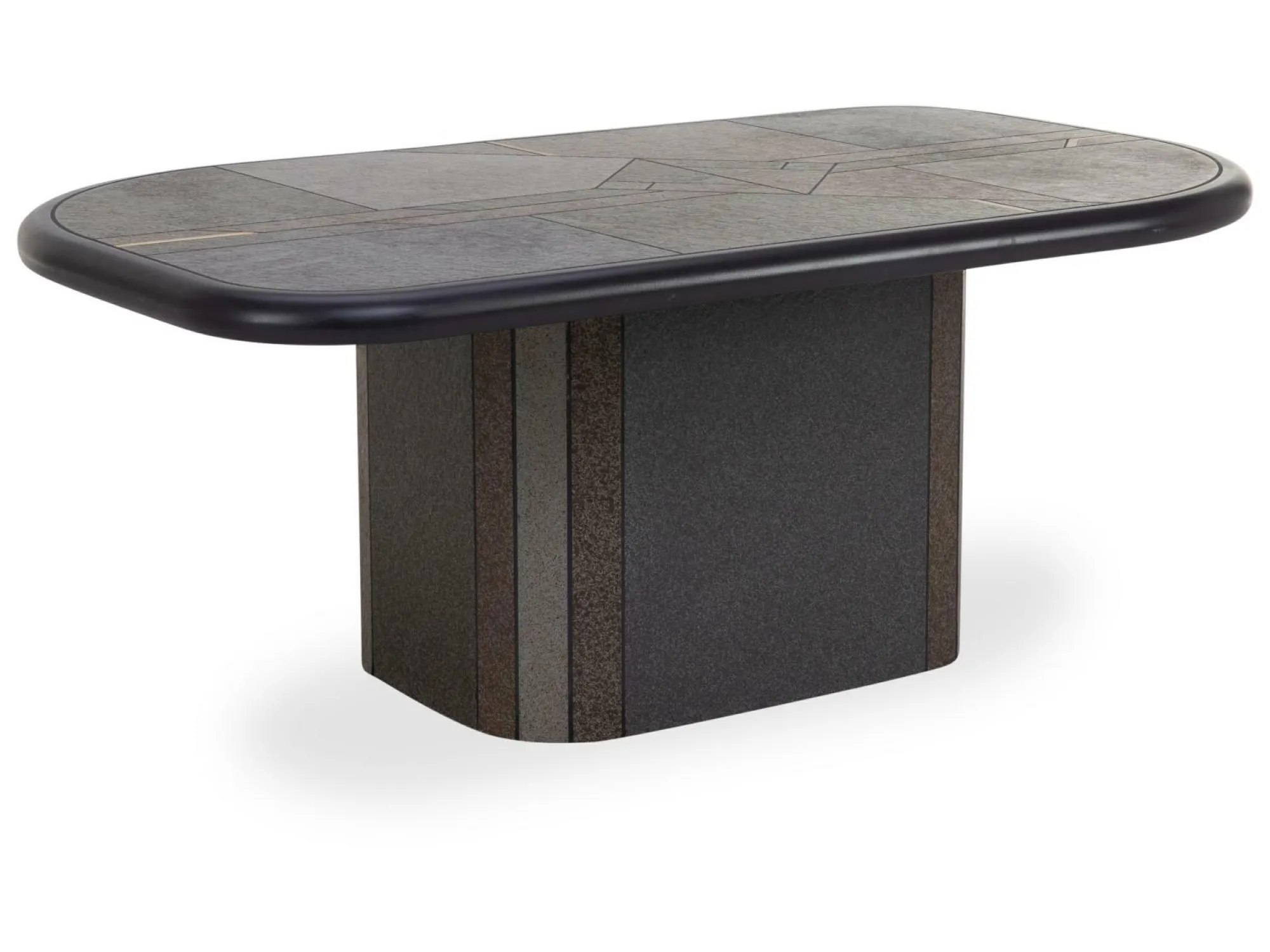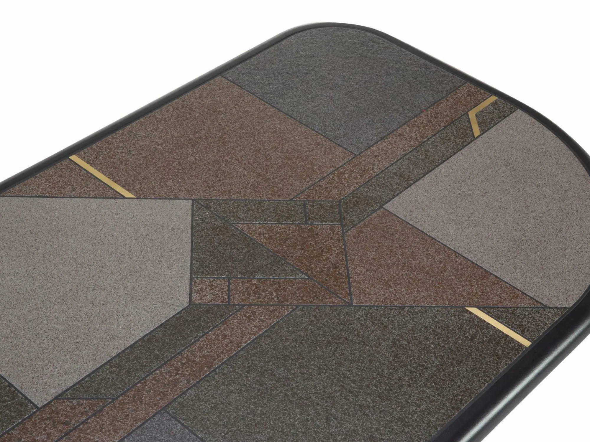 Das Design vom Couchtisch – Degastone Mineralmarmor Colorschiefer mit Messingeinlage – entspricht einem ausdrucksstarken Stil.