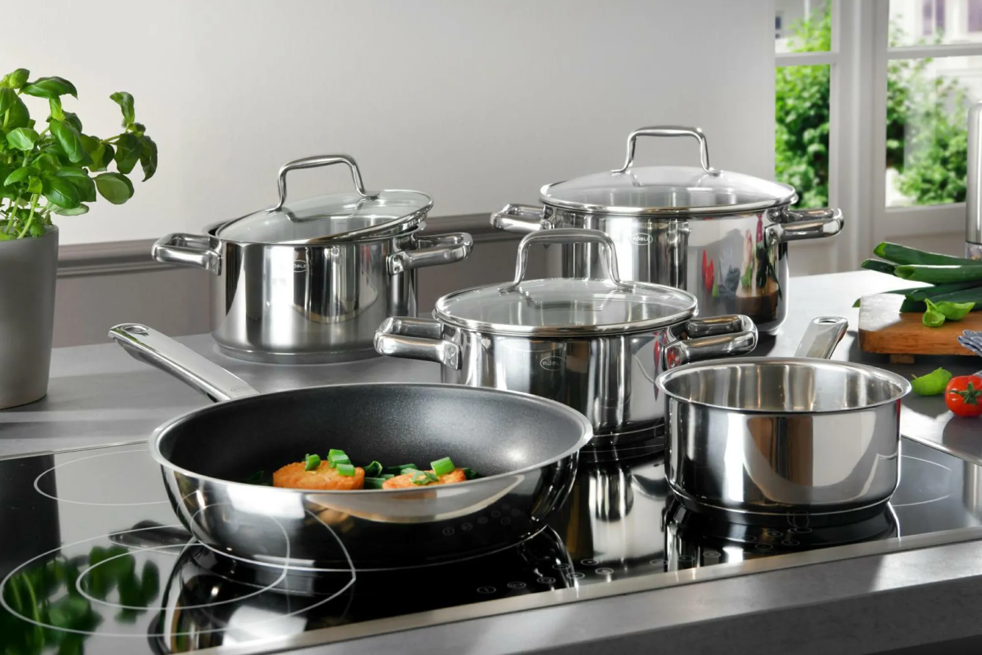 · bestehend aus: Stielkasserolle 16 cm Kochtopf 20/24 cm mit Deckel Bratentopf 20 cm mit Deckel Bratpfanne 28 cm geeignet für alle Herdarten: Elektro, Keramik, Gas, Induktion und Backofen