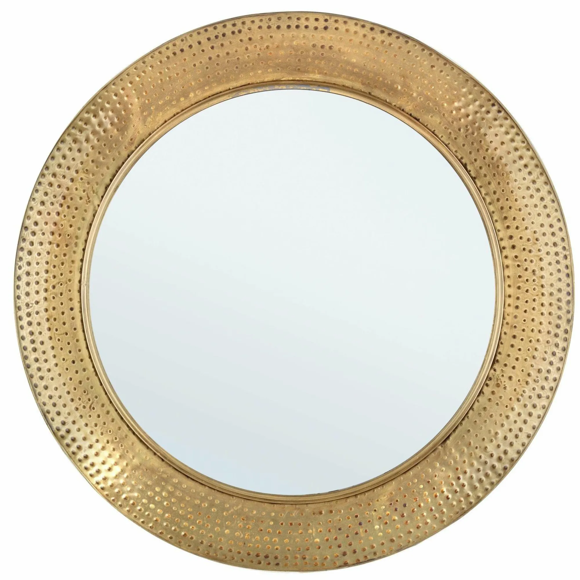 · Spiegel mit Rahmen aus Stahl und Oberflächenbearbeitung goldfarben.