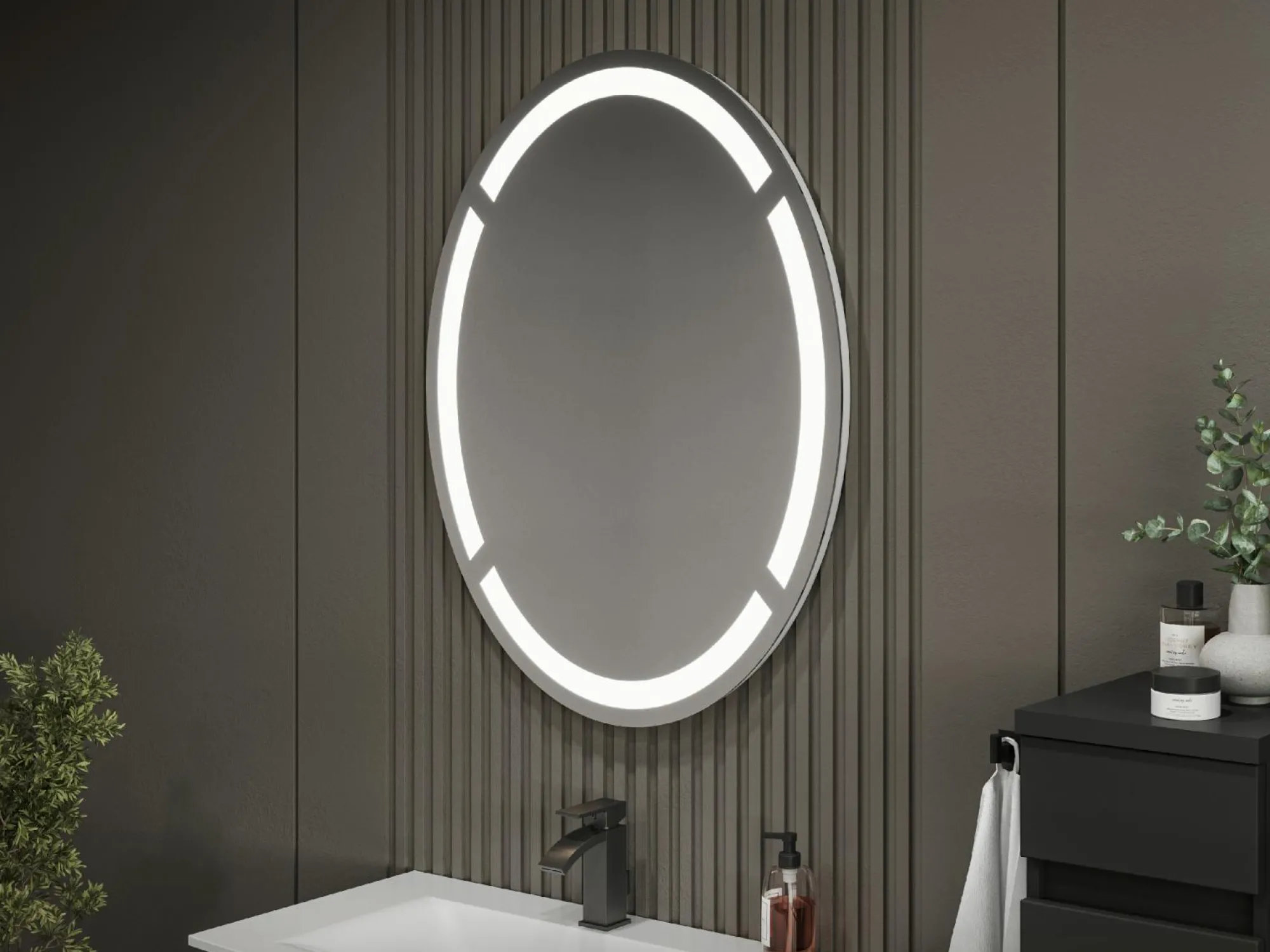 · ein seitlicher Sensor für Emotion Beleuchtung und Spiegelheizung