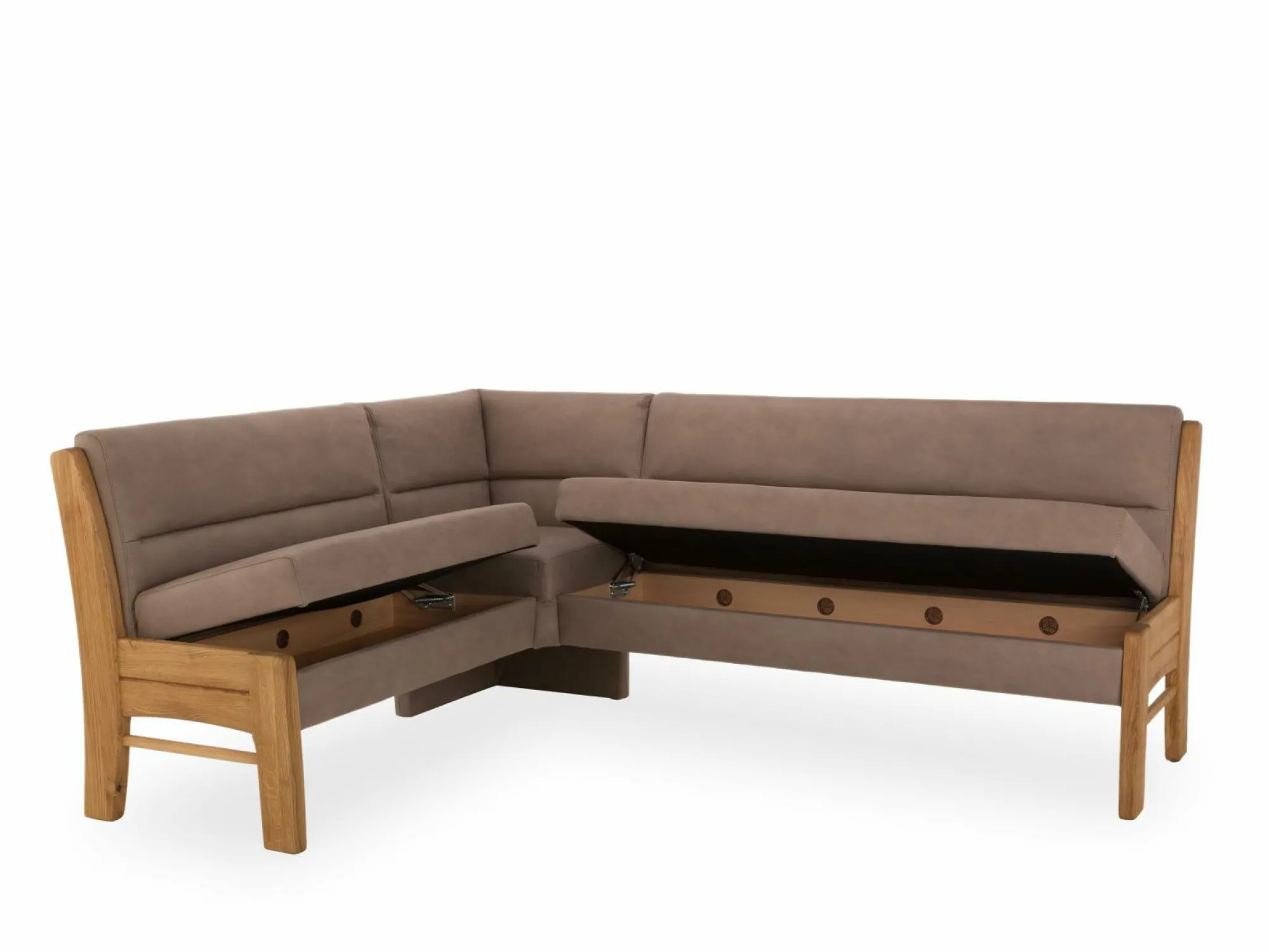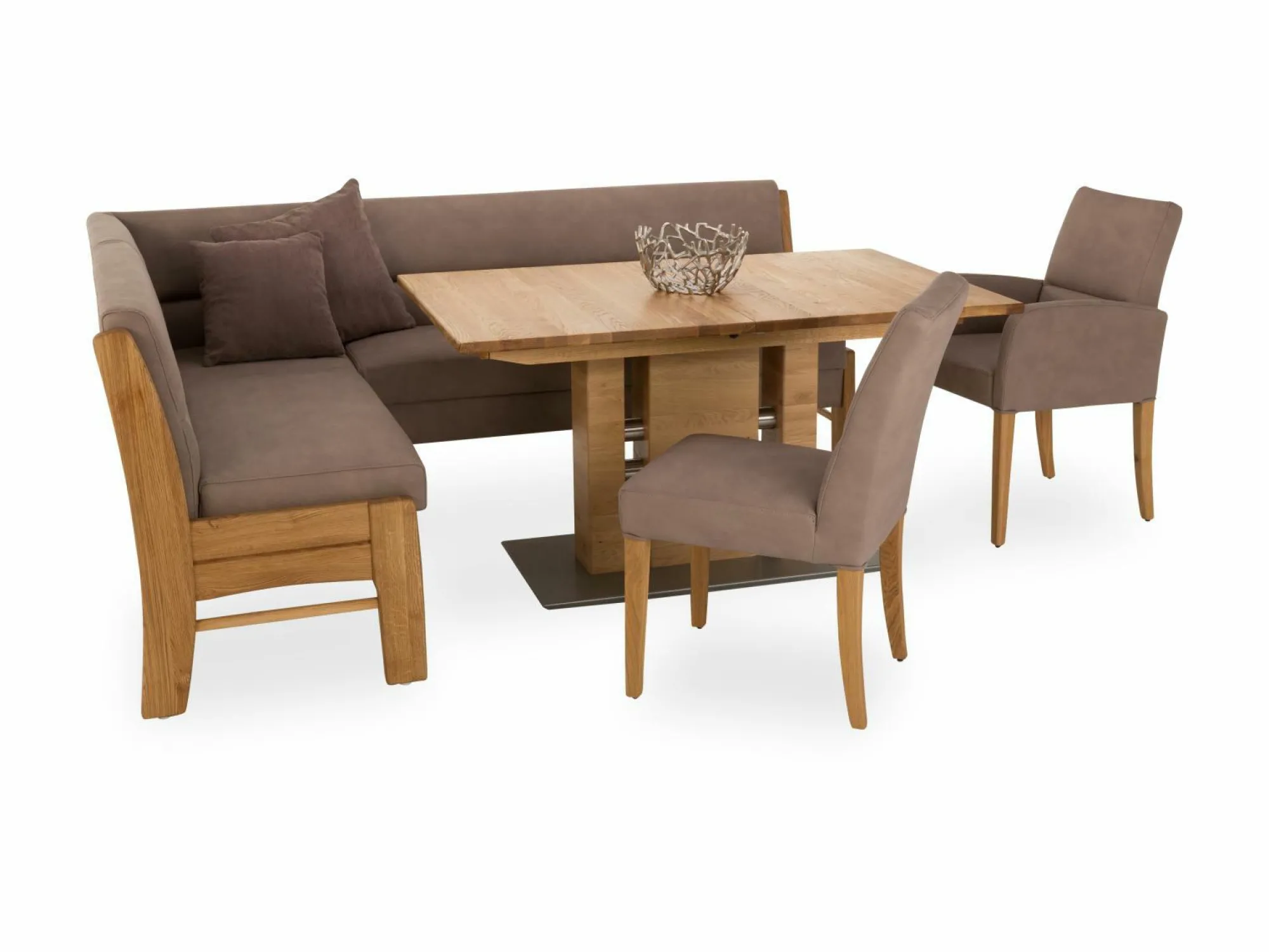 Ausführung Wildeiche natur geölt, massiv Bezug Microfaser 755-38 sand 1x Eckbank 4105 -9H Seitenteil sitzhoch links -BC Element mit klappbarem Stauraum -2U Spitzecke -BF Element mit klappbarem Stauraum -9K Seitenteil sitzhoch rechts Ohne Kontrastnaht – Ton in Ton 2x Polsterstuhl Bergamo 6057-1A Ohne Kontrastnaht – Ton in Ton 1x Armlehnenstuhl Bergamo 6057-1B Ohne Kontrastnaht – Ton in Ton 1x Esstisch Bergamo Platte: Wildeiche natur geölt, Massivholz mit Quermaserung mit Synchronauszug und 1 innenliegende Einlegeplatte ca. 45cm ausziehbar auf ca. 185 x 90cm Bodenplatte: MDF Edelstahldekor ummantelt Ohne Kontrastnaht – Ton in Ton 1x Esstisch Bergamo Platte: Wildeiche natur geölt, Massivholz mit Quermaserung mit Synchronauszug und 1 innenliegende Einlegeplatte ca. 45cm ausziehbar auf ca. 185 x 90cm Bodenplatte: MDF Edelstahldekor ummantelt