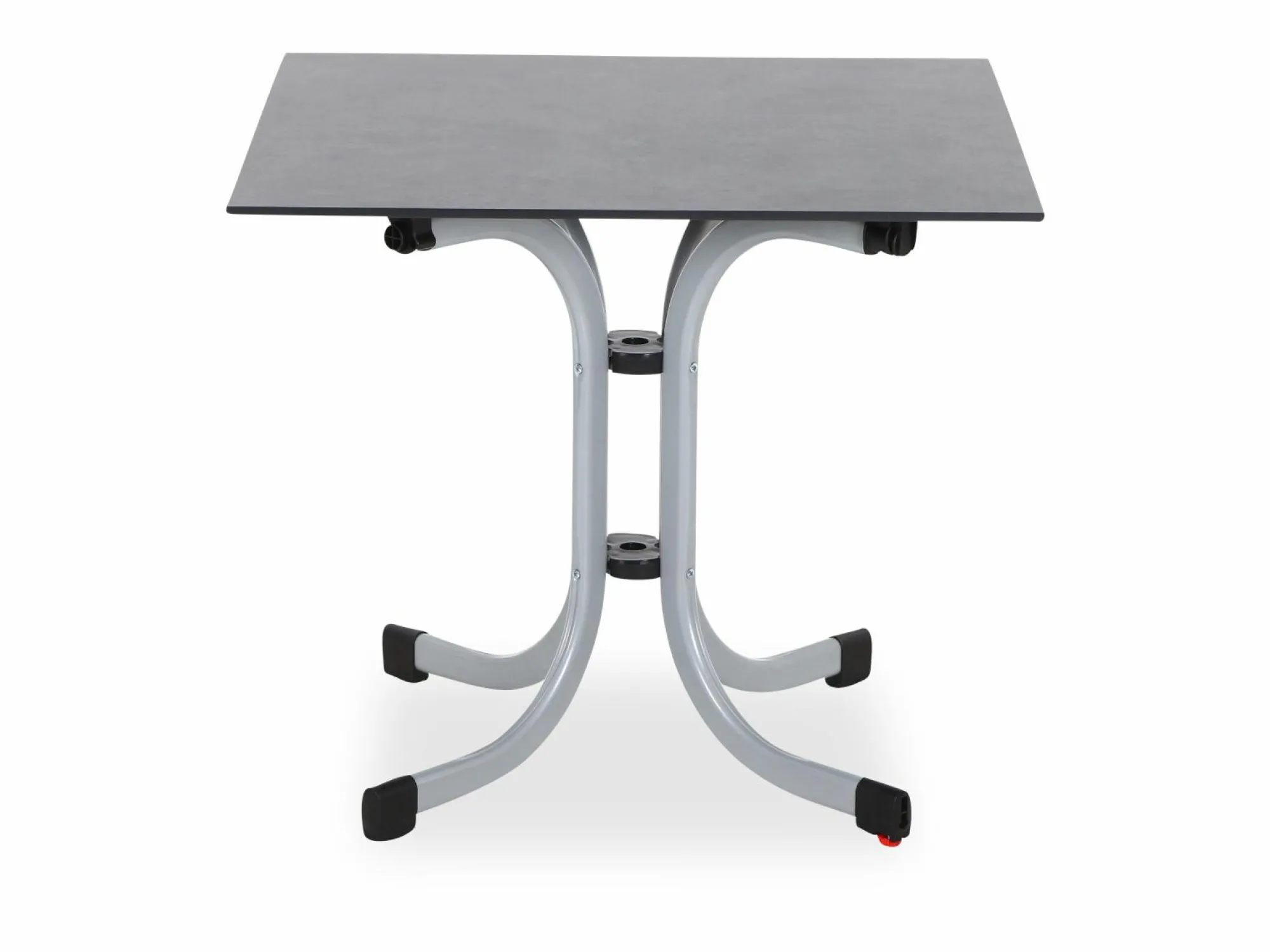 · Der Klapptisch SOLA mit seinem stabilen, silberfarbenen Stahlrohrgestell und der hochwertigen HPL-Tischplatte in der Farbe dark stone ist dazu bereit dein neuer Liebling zu werden. Mit einem Maß von 80×80 cm braucht er nicht zu viel Platz. Und wenn du auch diesesn Platz noch brauchst, ist SOLA Ganz schnell weggeklappt und platzsparend verstaut.