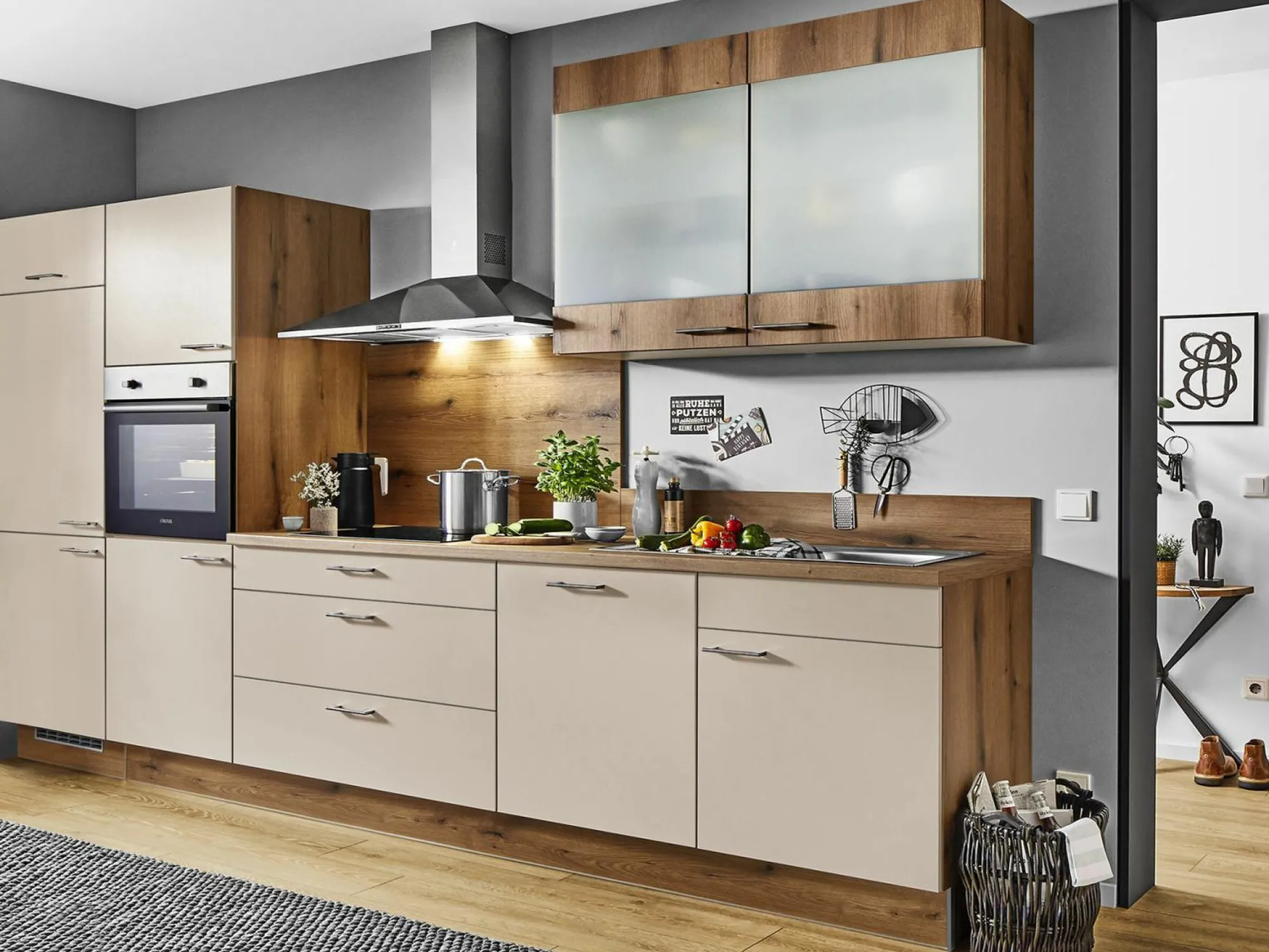 PBL249514 Front: Creme Zu der Küche gehören folgende E-Geräte: PREMIERE: Backofen: 0236247, EEK:A, 235214 PREMIERE: Kochfeld 354030 Induktion PREMIERE: Dunstabzugshaube: 0143396, EEK:A KH17286S PREMIERE: Kühlschrank: 0236336, EEK:F, 361616 AUF WUNSCH GEGEN MEHRPREIS: Nischenausstattung und Zubehör Geschirrspüler