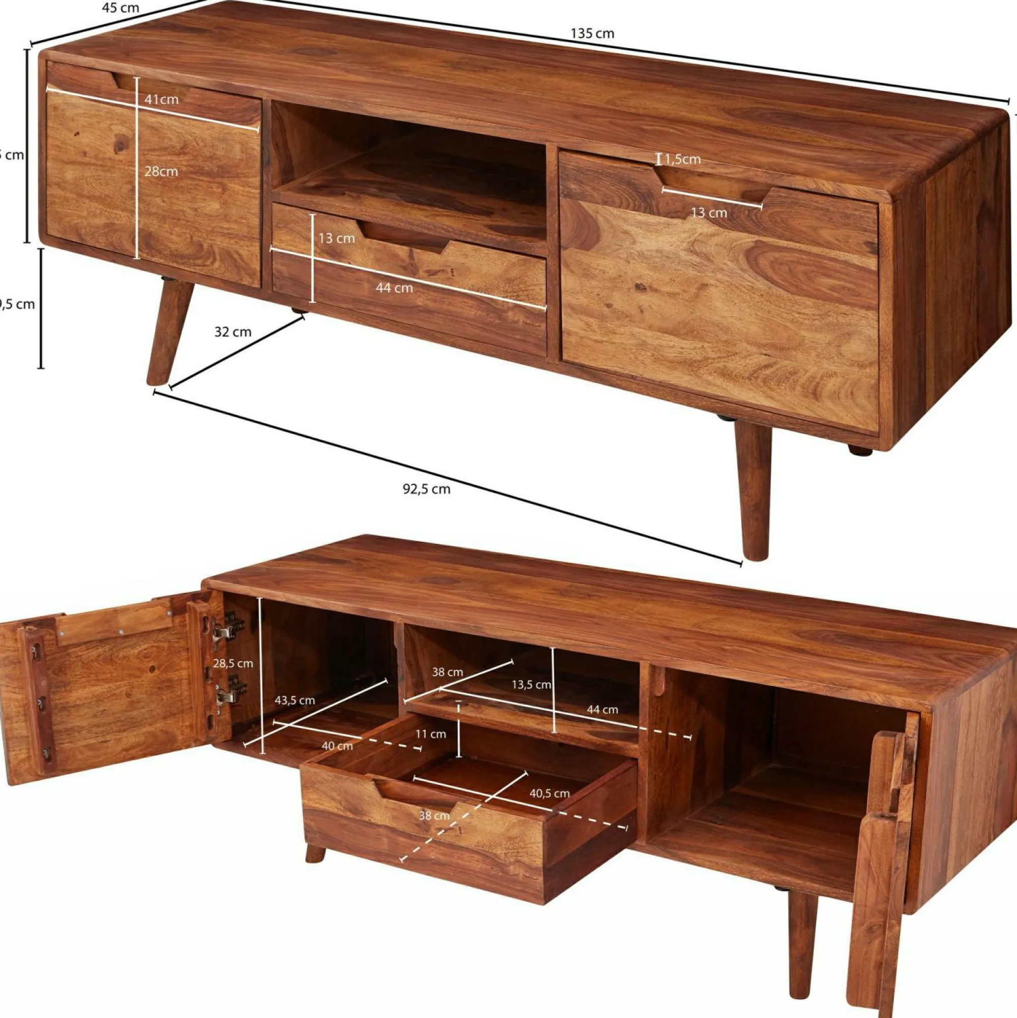 · Abmessungen – Innenmaße des offenen Ablagefachs (BxHxT): 44 x 13,5 x 38 cm.