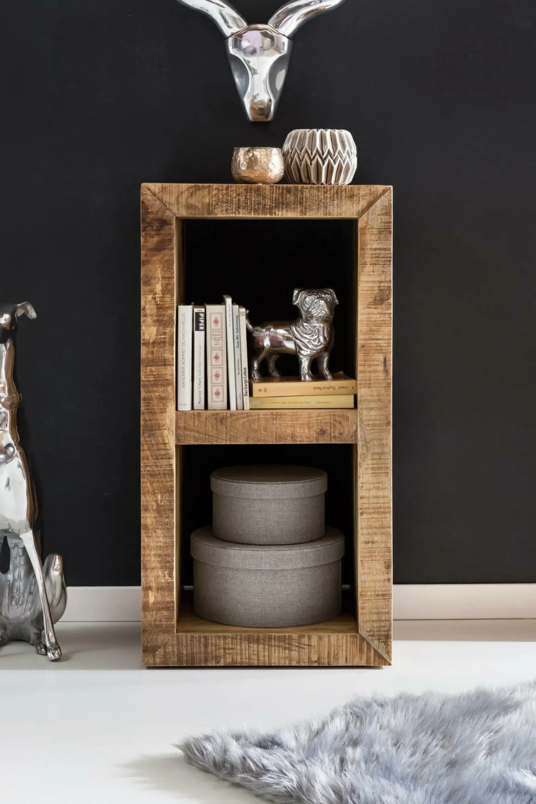 · Multitalent mit Stil & Charme – Kleine Naturholz Regale wie diese eignen sich prima als Abstelltisch