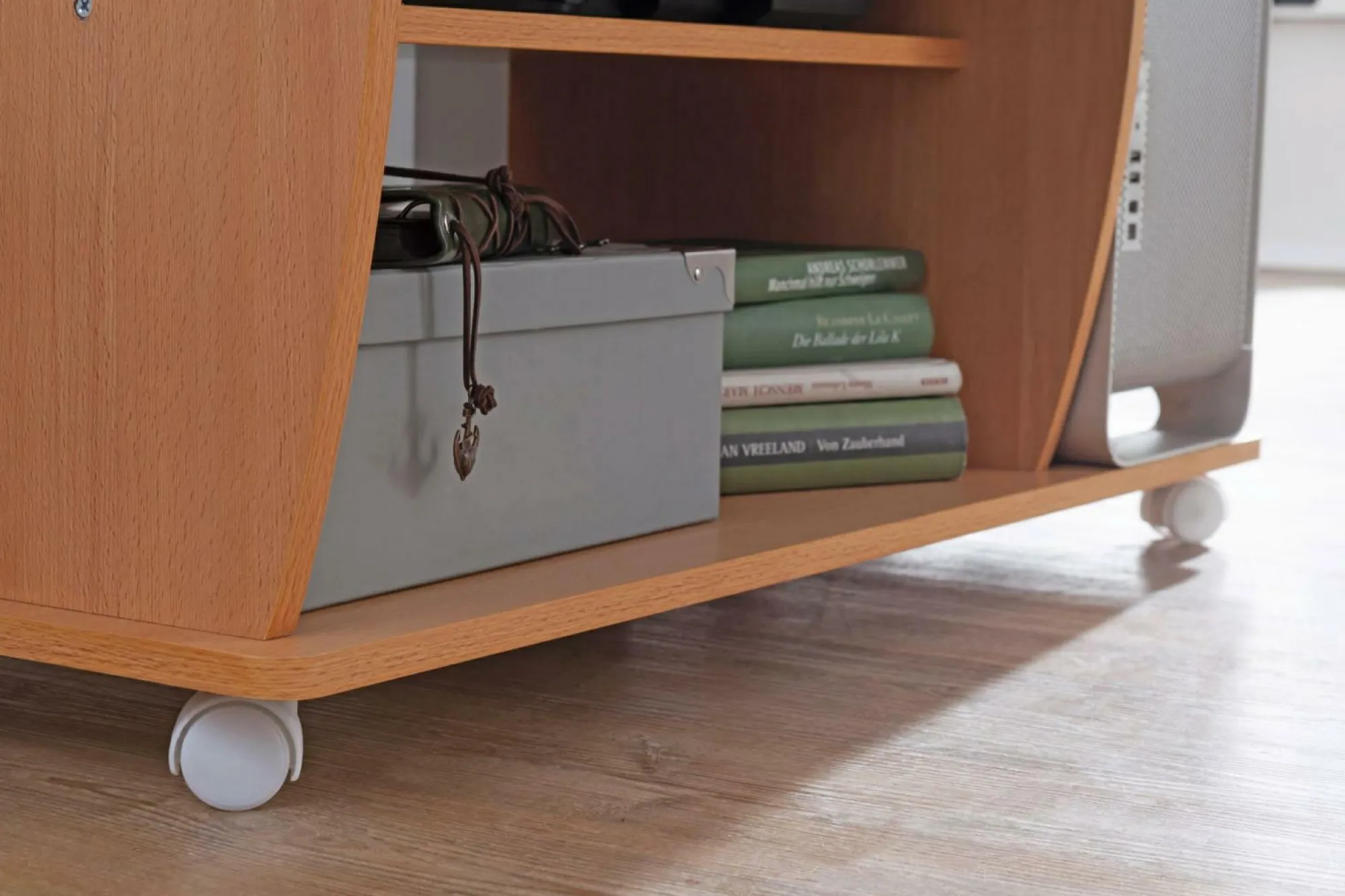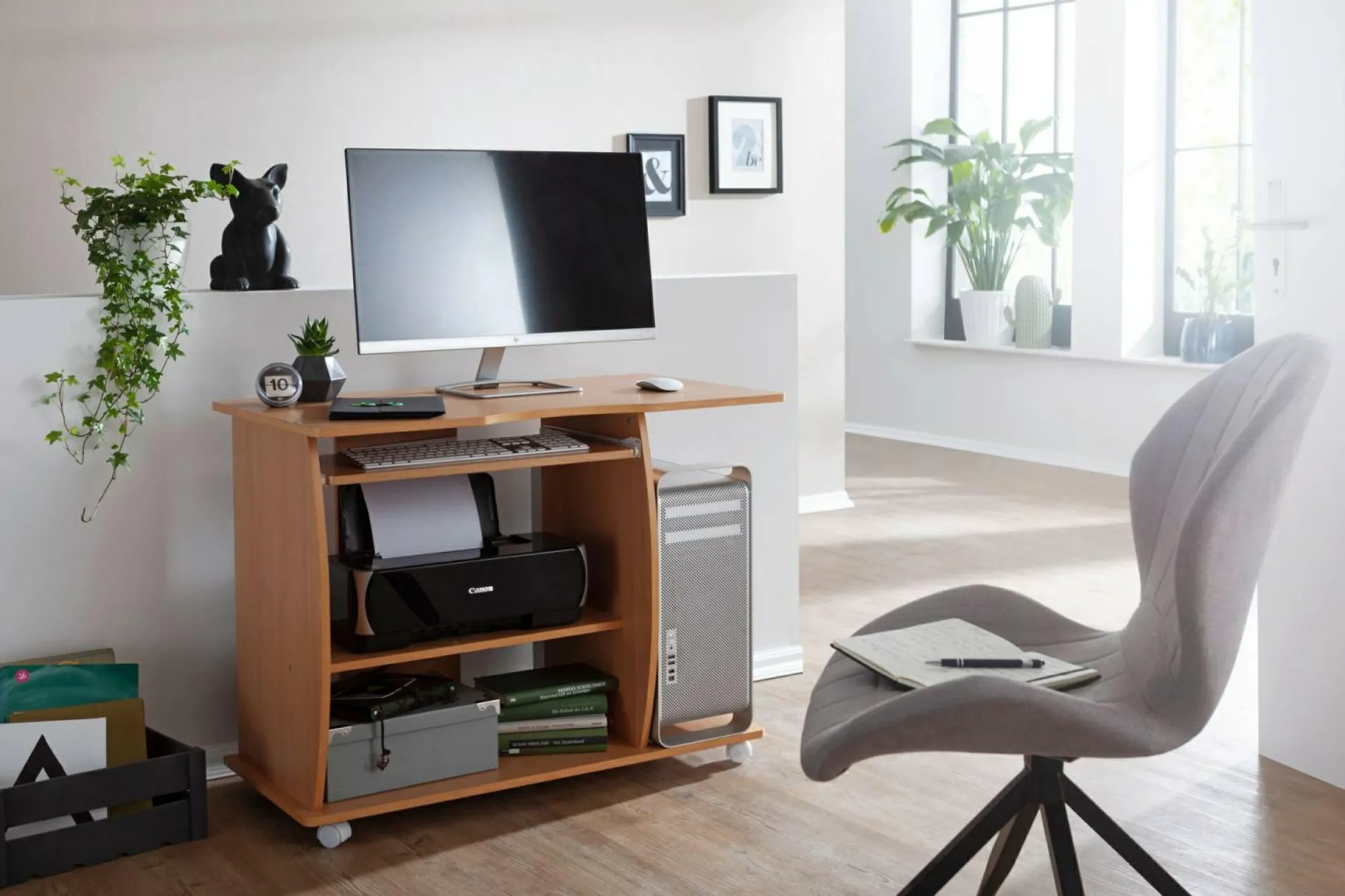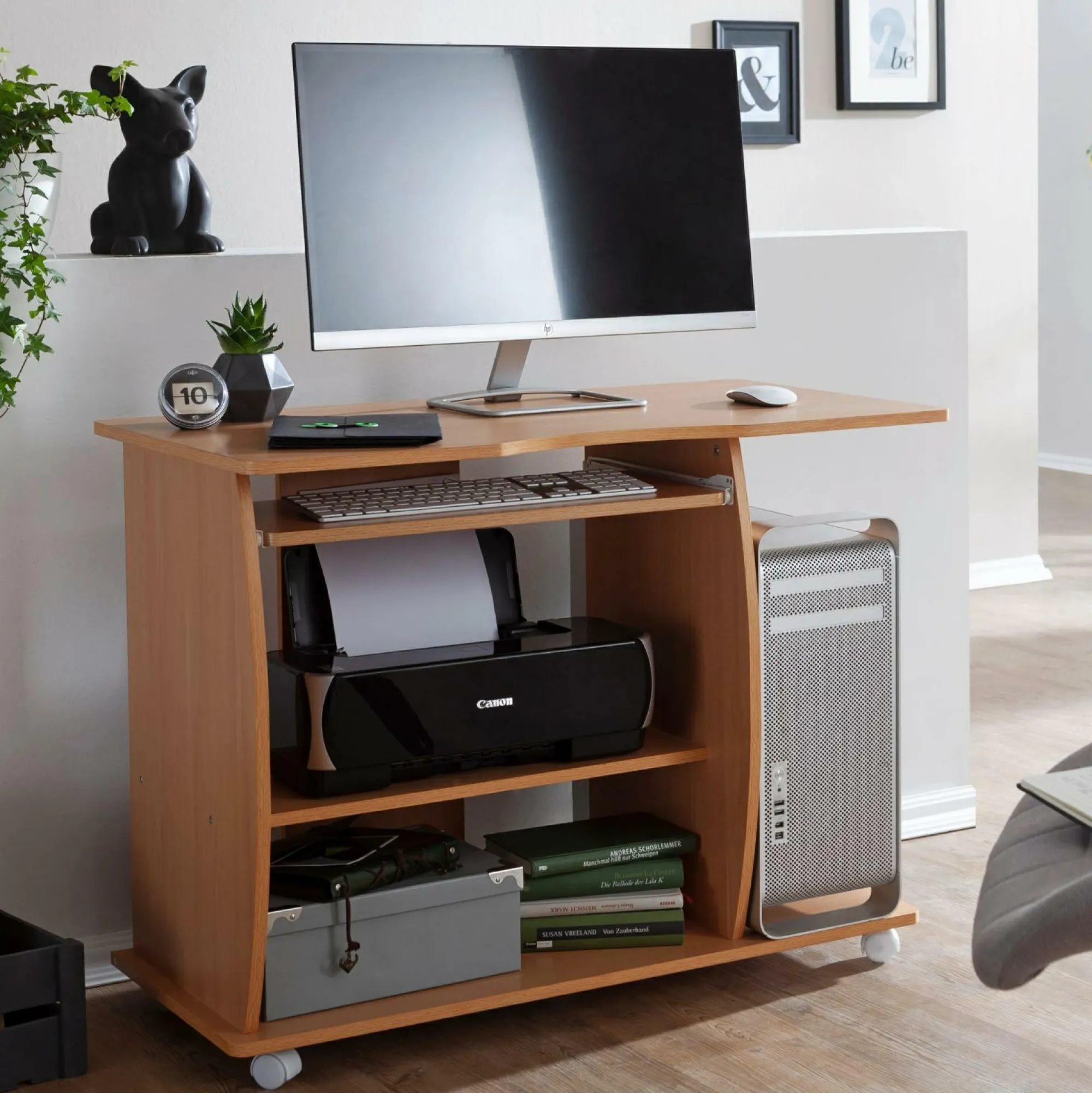 · Ein mobiler Arbeitstisch – Auf diesem Schreibtisch bekommen Sie alles unter was benötigt wird, vom zum Drucker.