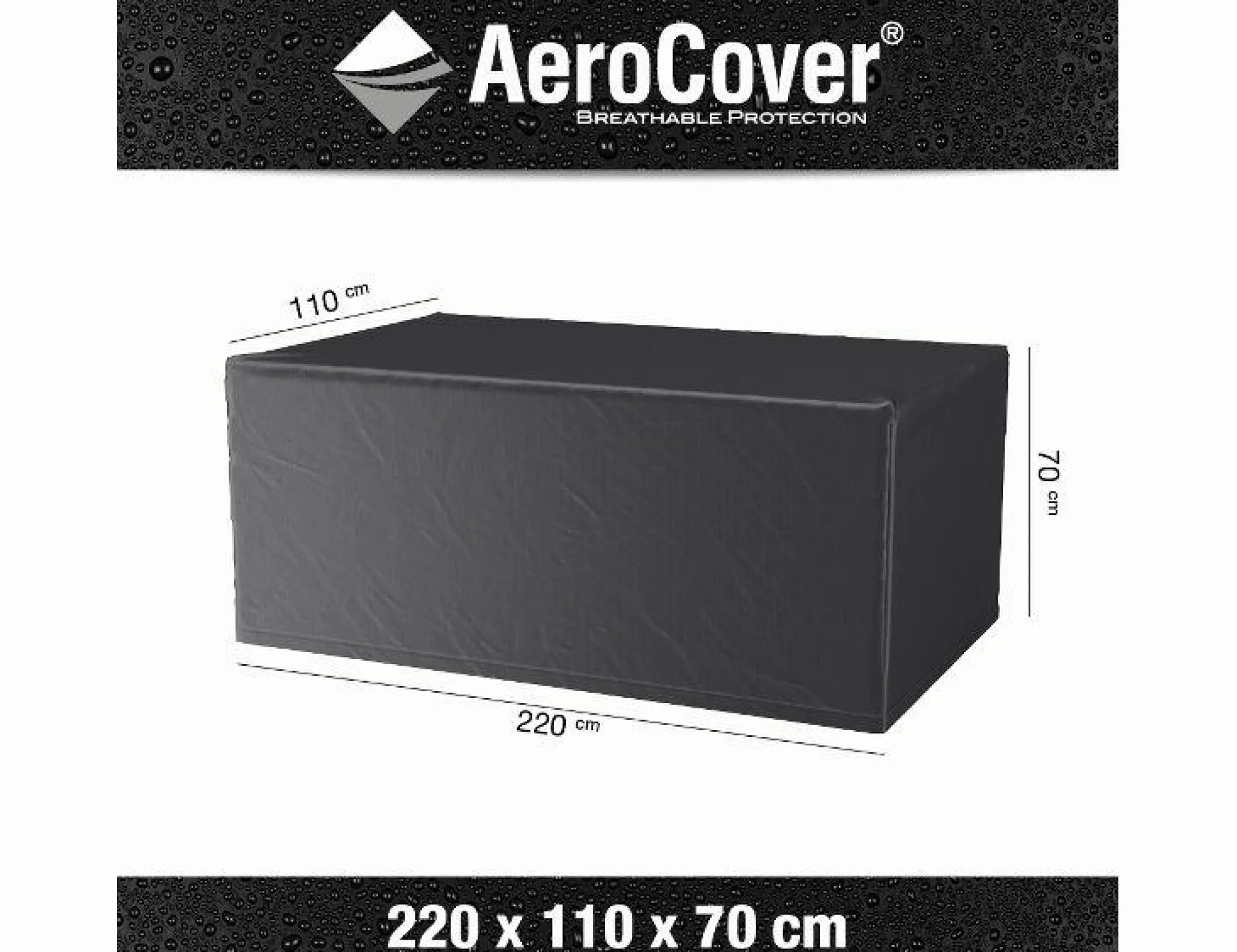 · Sitzgruppen-Hülle von AeroCover. Atmungsaktive Sitzgruppen-Hülle für rechteckige Tische bis zu 220×110 cm inklusive Stühle mit niedriger Rückenhöhe (Höhe der Hülle 70 cm). Das atmungsaktive AeroCover-Gewebe ist wasserbeständig und reduziert die Kondensbildung, wodurch der Bildung von Schimmel vorgebeugt wird. AeroCover Schutzhüllen verlängern die Lebensdauer Ihrer Gartenmöbel. AeroCovers sind aus leichtem Ripstop Polyester mit einer integrierten, atmungsaktiven Membran hergestellt. Dank des dünnen Gewebes sind diese Hüllen besonders handlich in der Anwendung. Bei Nichtgebrauch sind sie platzsparend aufzubewahren und nehmen, auch dank der integrierten Aufbewahrungstasche, sehr wenig Platz ein. Die Hülle ist mit einem Zugband mit zwei Stoppern ausgestattet, so dass eine optimale Befestigung sichergestellt ist. Das AeroCover-Gewebe ist 100% wasserdicht, die Nähte sind spritzwasserfest.