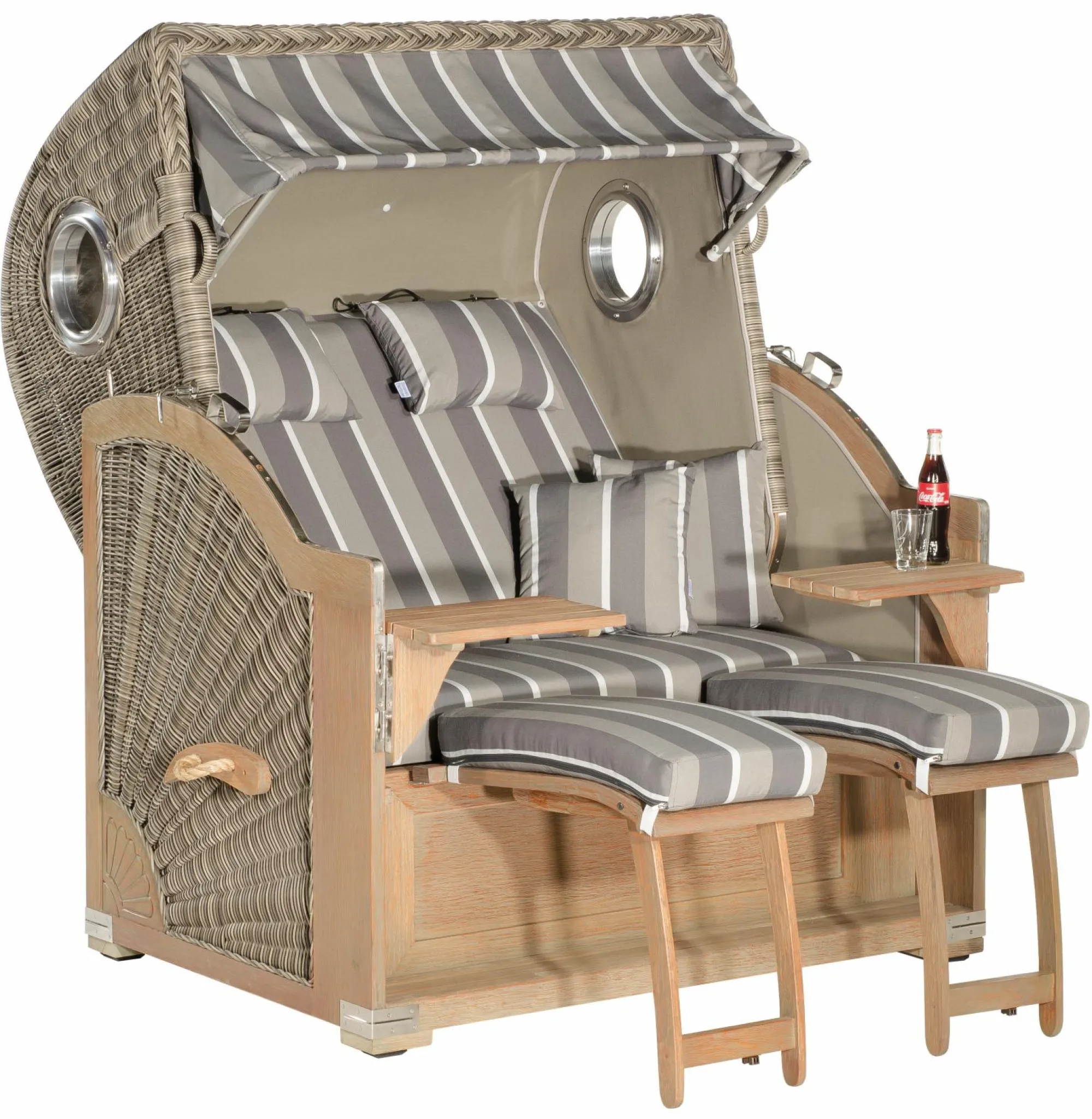 · inkl. 2 Kuschelkissen, 2 höhenverstellbaren Nackenkissen, 2 Fußkissen, Staufach und 2 Schwenktischen