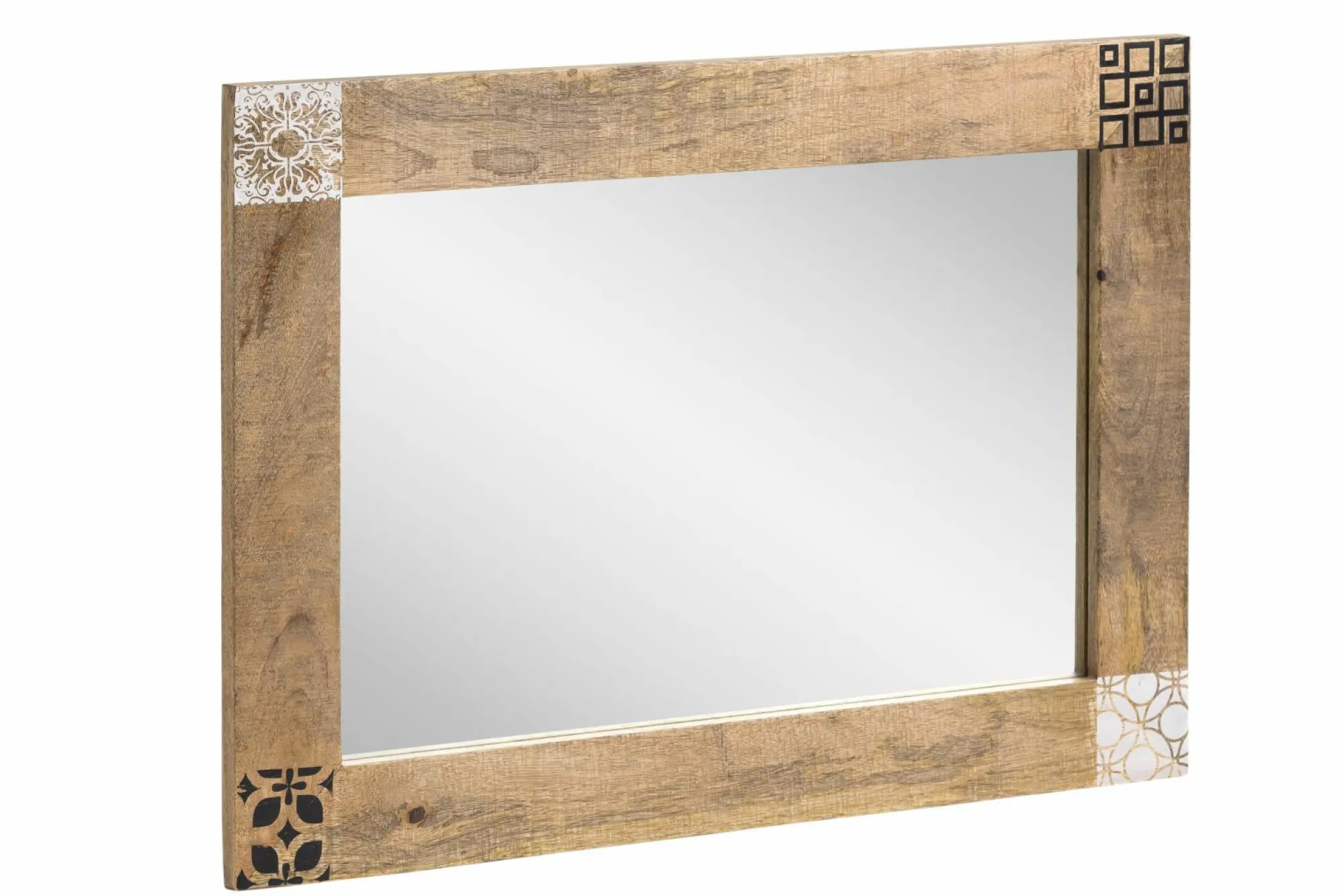 Dieser Wandspiegel findet in jeder Einrichtung seinen Platz. Mit seiner stimmigen Farbgebung passt der Spiegel zu den unterschiedlichsten Einrichtungsstilen und kann daher hervorragend in bestehende Raumgestaltungen integriert werden. Dieser Spiegel aus Holz sorgt für ein harmonisches Gesamtbild. Der Spiegel verleiht mit seinem ansprechenden Stil jedem Raum ein Wohlfühlambiente. Er bereichert Ihr persönliches Einrichtungskonzept durch das ländliche Design zusätzlich. Der Spiegel weist eine Gesamtbreite von 90 cm, eine Höhe von 65 cm und eine Tiefe von 3 cm auf. Dieses Wohnaccessoire verleiht optische Tiefe und vergrößert nahezu jeden Raum.