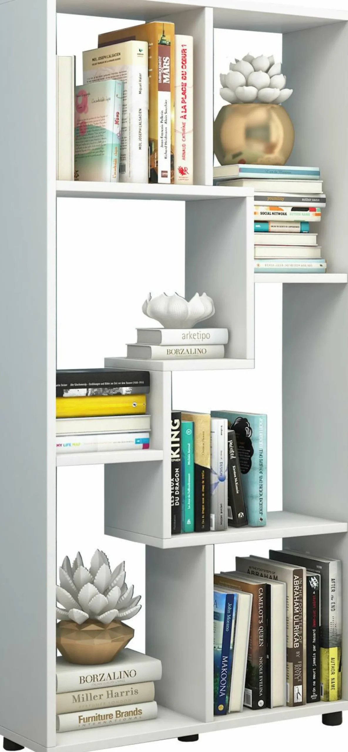 · Der Korpus besteht aus einer Holzstruktur-Nachbildung. Das Standregal eignet sich auch perfekt als Raumteiler für jeden Wohnbereich und wirkt besonders durch die stylische Fachboden-Anordnung.
