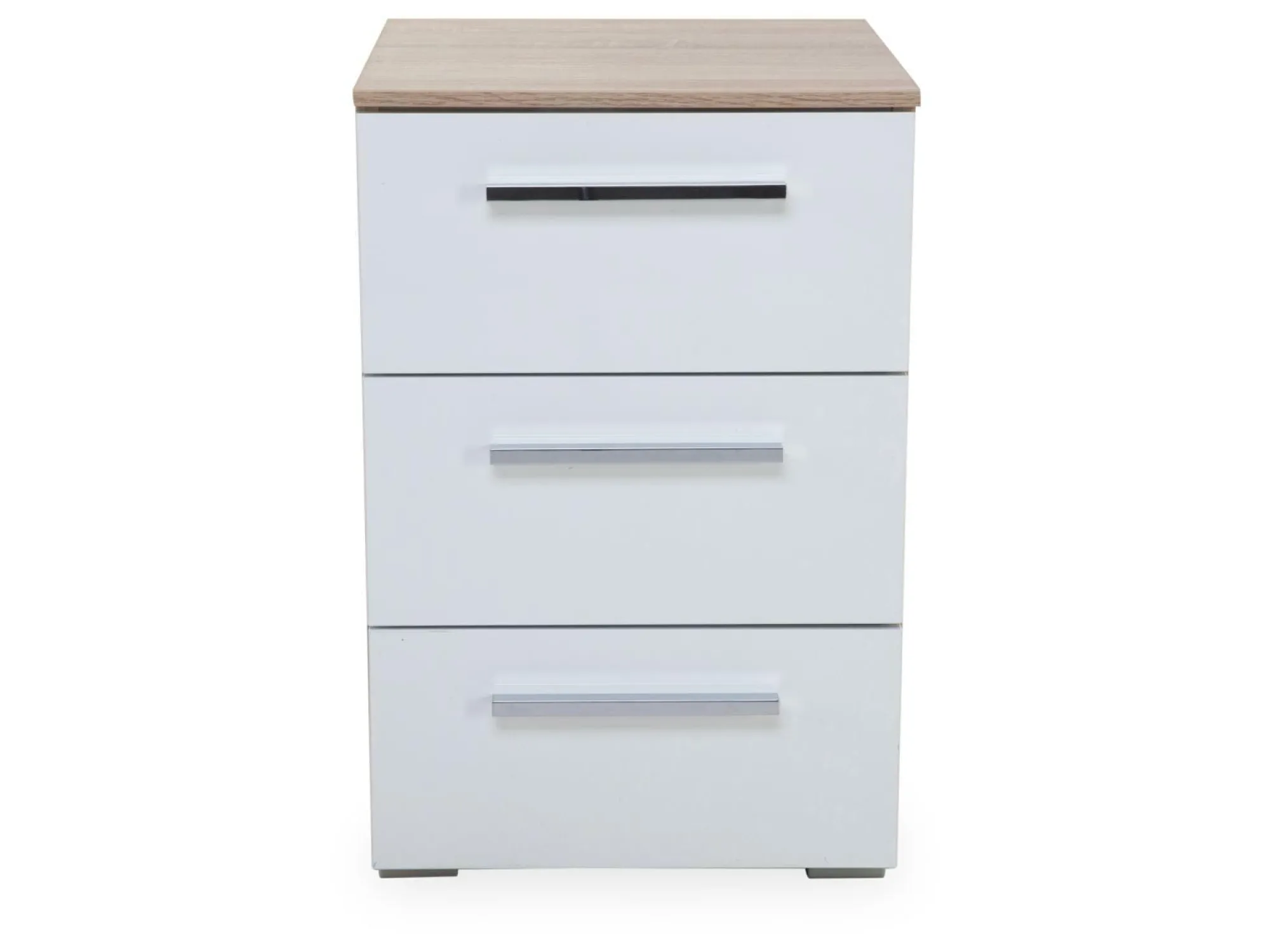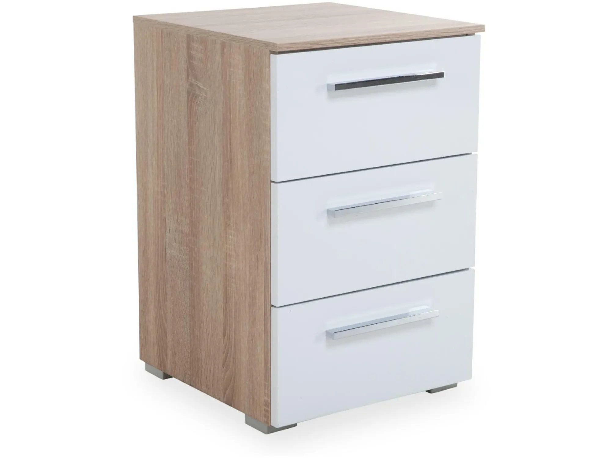 mit 3 Schubkästen Korpus: Dekor-Druck Eiche Sonoma Front: Hochglanz weiß Griff “K“ Chrom