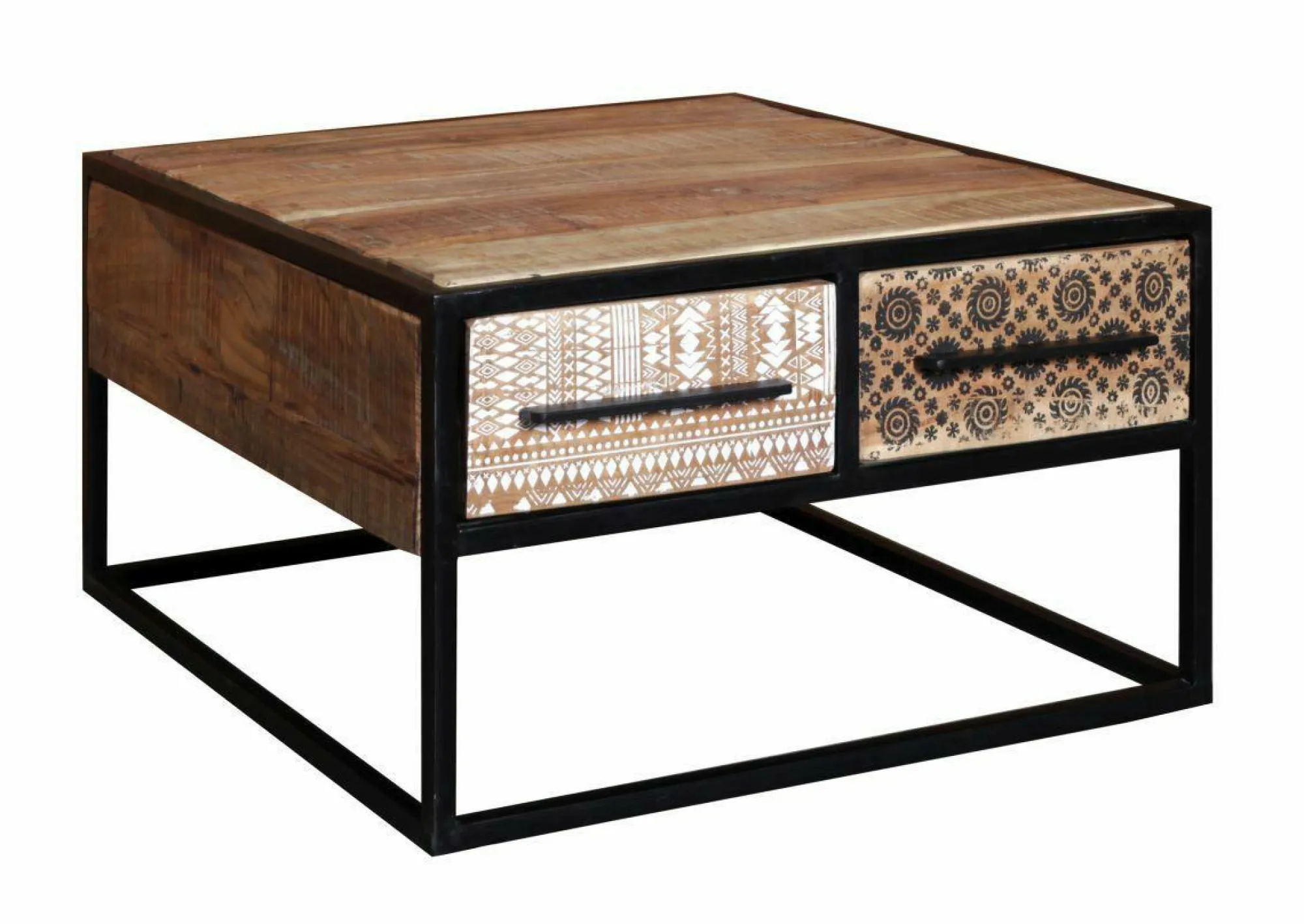 Schaffen Sie einen attraktiven Hingucker in Ihrem Wohnraum mit dem Couchtisch Wake Up. Dieser aus Akazie gefertigte Couchtisch erscheint in Braun und besitzt Schubladen mit attraktiven Printmustern. Die raue Oberfläche unterstreicht den rustikalen Charakter dieses Tisches, während die beiden Schubkästen für Stauraum sorgen. Das Metallgestell rundet das Design ab und bietet stabilen Halt.