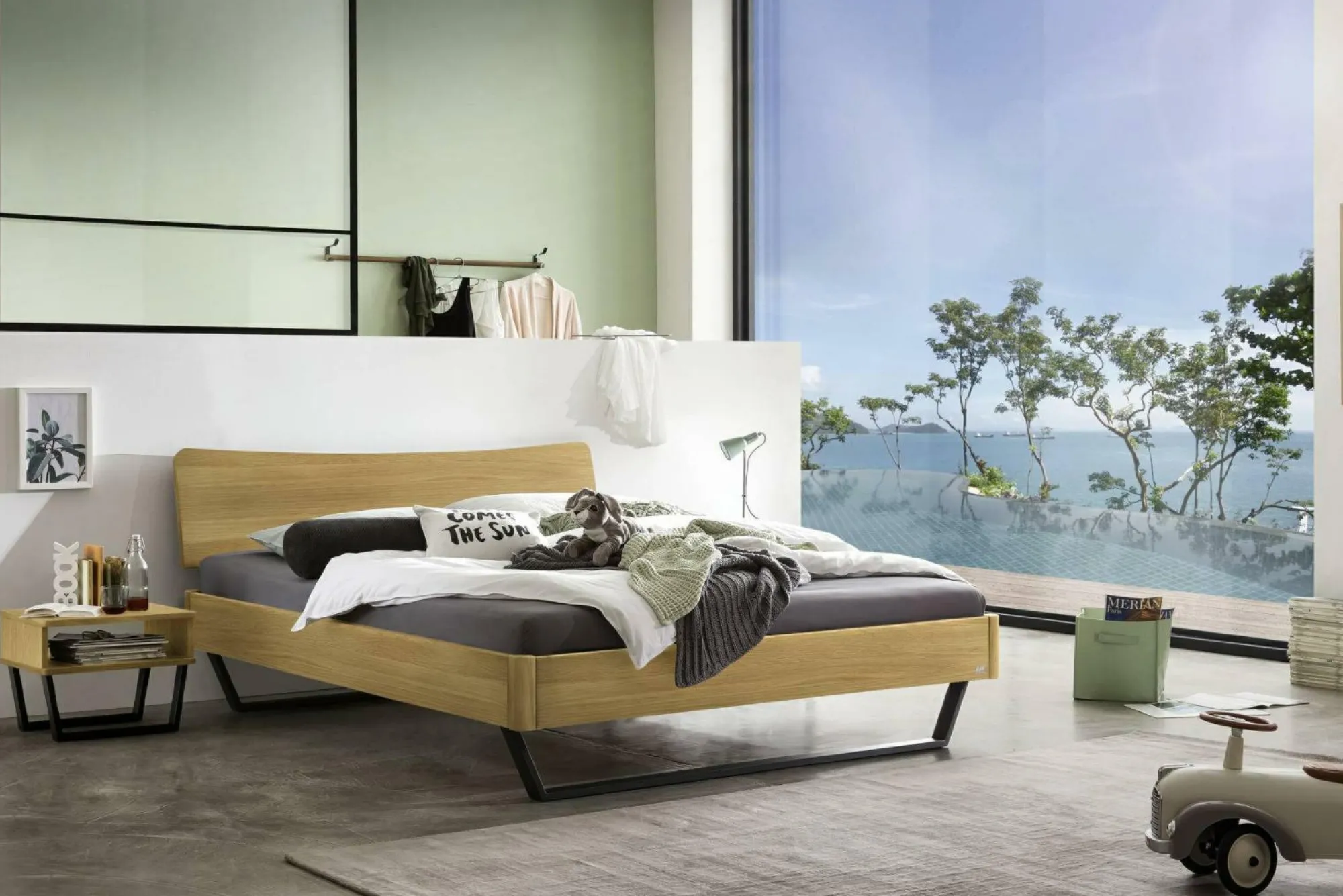 · Modern, cool und schnittig ? Der Nachttisch «Surf» erinnert mit seinen beiden markanten Kufen an eine rasante Schlittenpartie. Die Kombination aus glatten, abgerundeten Holzoberflächen mit den eher rau und rustikal anmutenden Metallfüssen verleiht jedem Zimmer ein nobles Factory-Feeling. Mit dem offenen Fach verdoppelt sich die Ablagefläche.