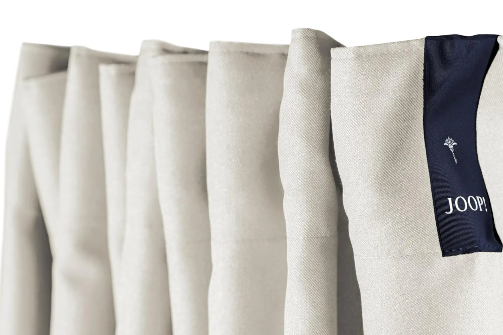 · Blickdichter Fertigvorhang mit verdeckten Schlaufenband, gewebt, einfarbig, matte Flanelloptik mit aufgenähtem JOOP! Ripsband oben rechts als Blickfang