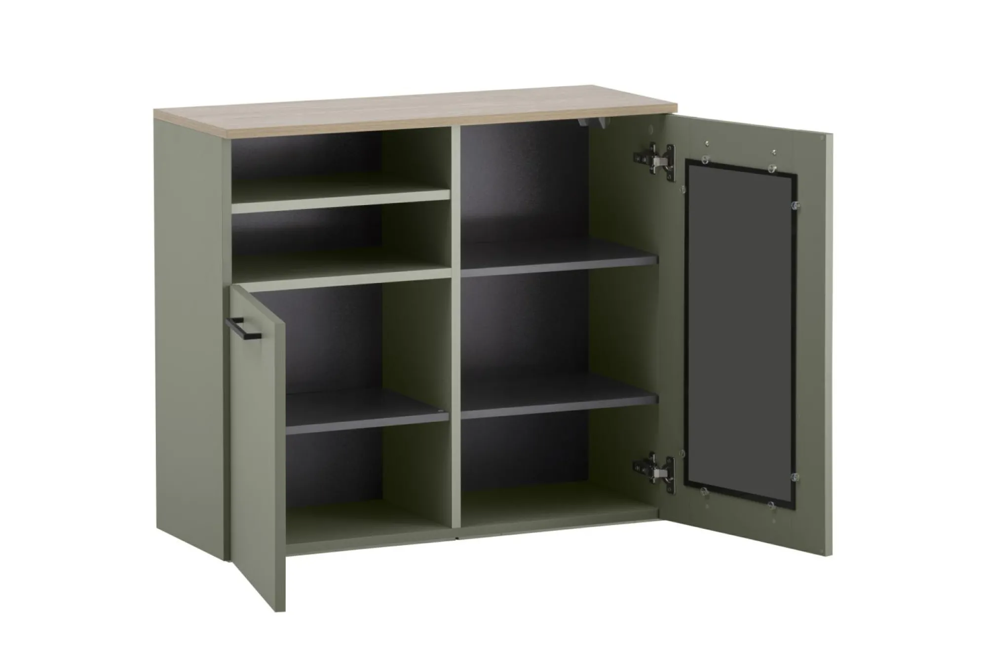 · mit 2 Türen, 4 Einlegeböden und 2 offenen Fächern