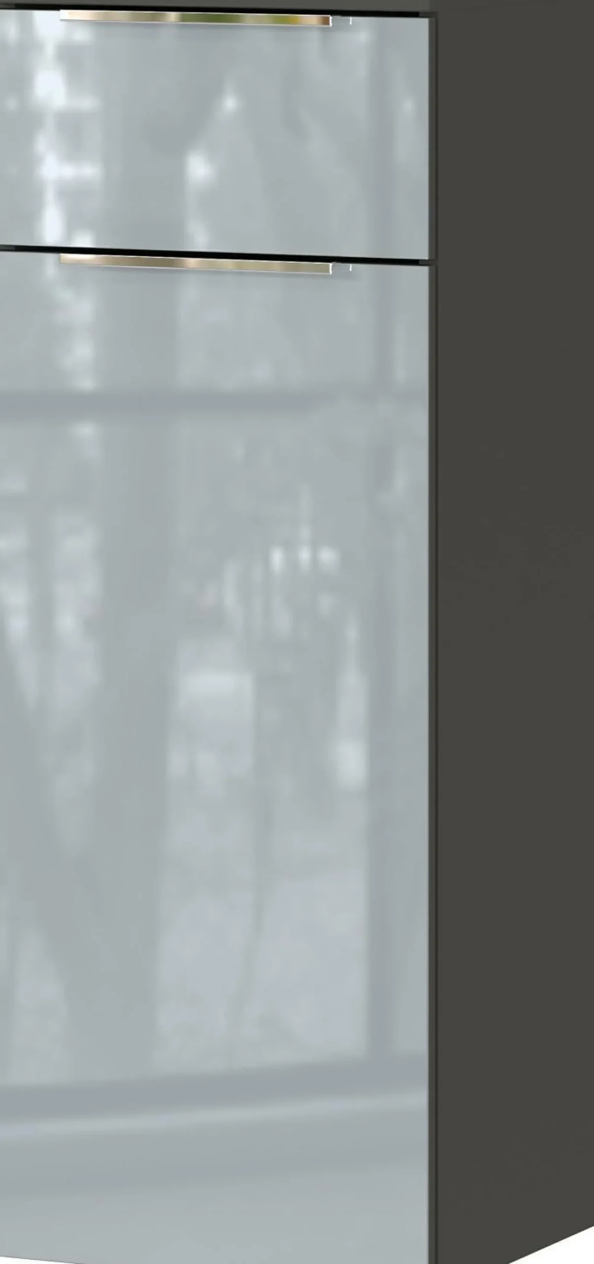 · Kratzfeste und widerstandsfähige Oberflächenbeschichtung. | Stoß- und schlagfeste Kanten. | Front(en) aus Glas. | Schubladen schließen durch integrierten Dämpfer langsam, sanft und geräuschlos. | Türen schließen durch integrierten Dämpfer langsam, sanft und geräuschlos. | Türen sowohl rechts als auch links montierbar. | Mit Kantengriffen aus Metall. | Umweltfreundlich, ohne Styropor verpackt. | Made in Germany.