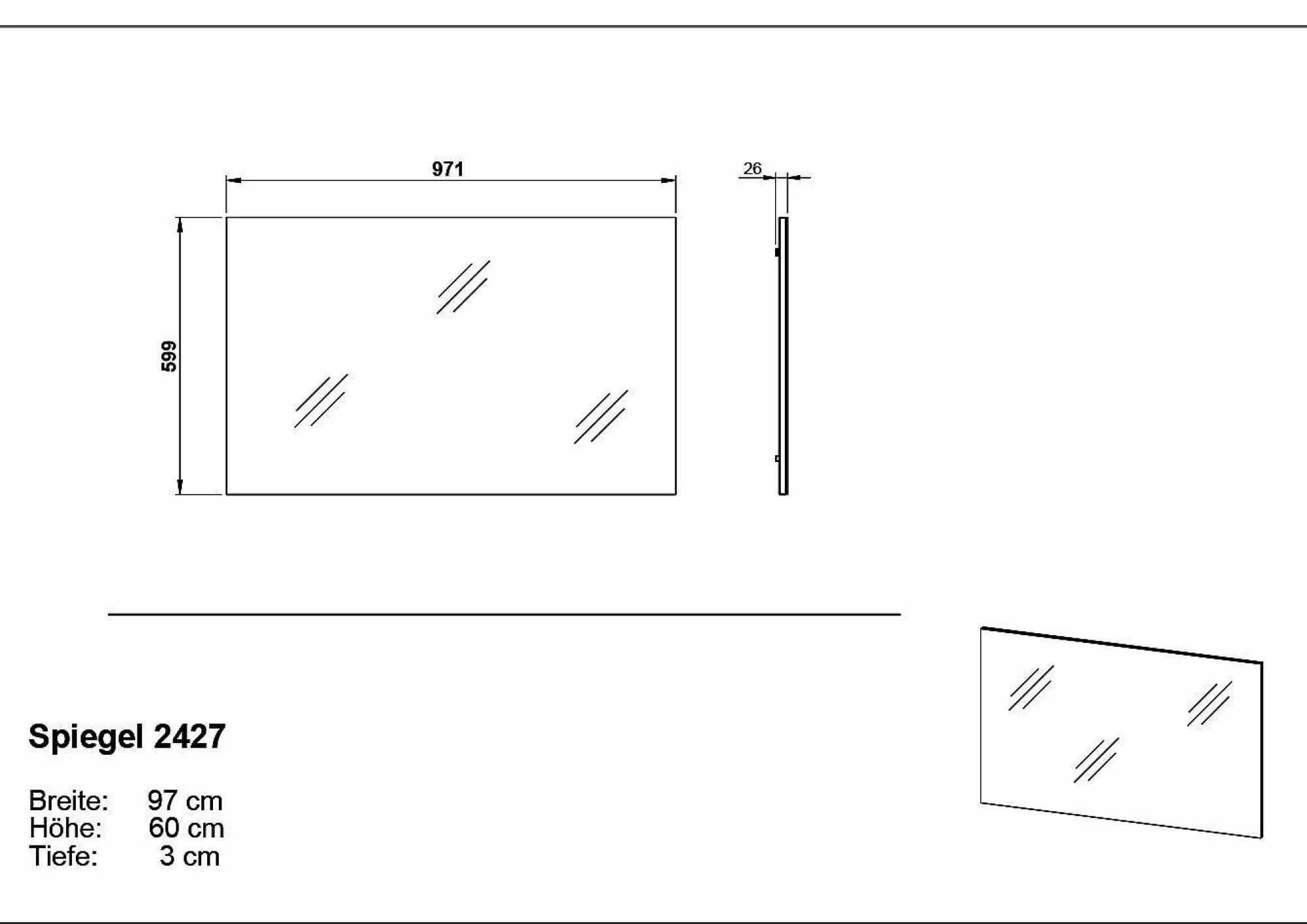 · Spiegel auf melaminharzbeschichteter Trägerplatte, hochwertige ABS-Kanten, Made in Germany.