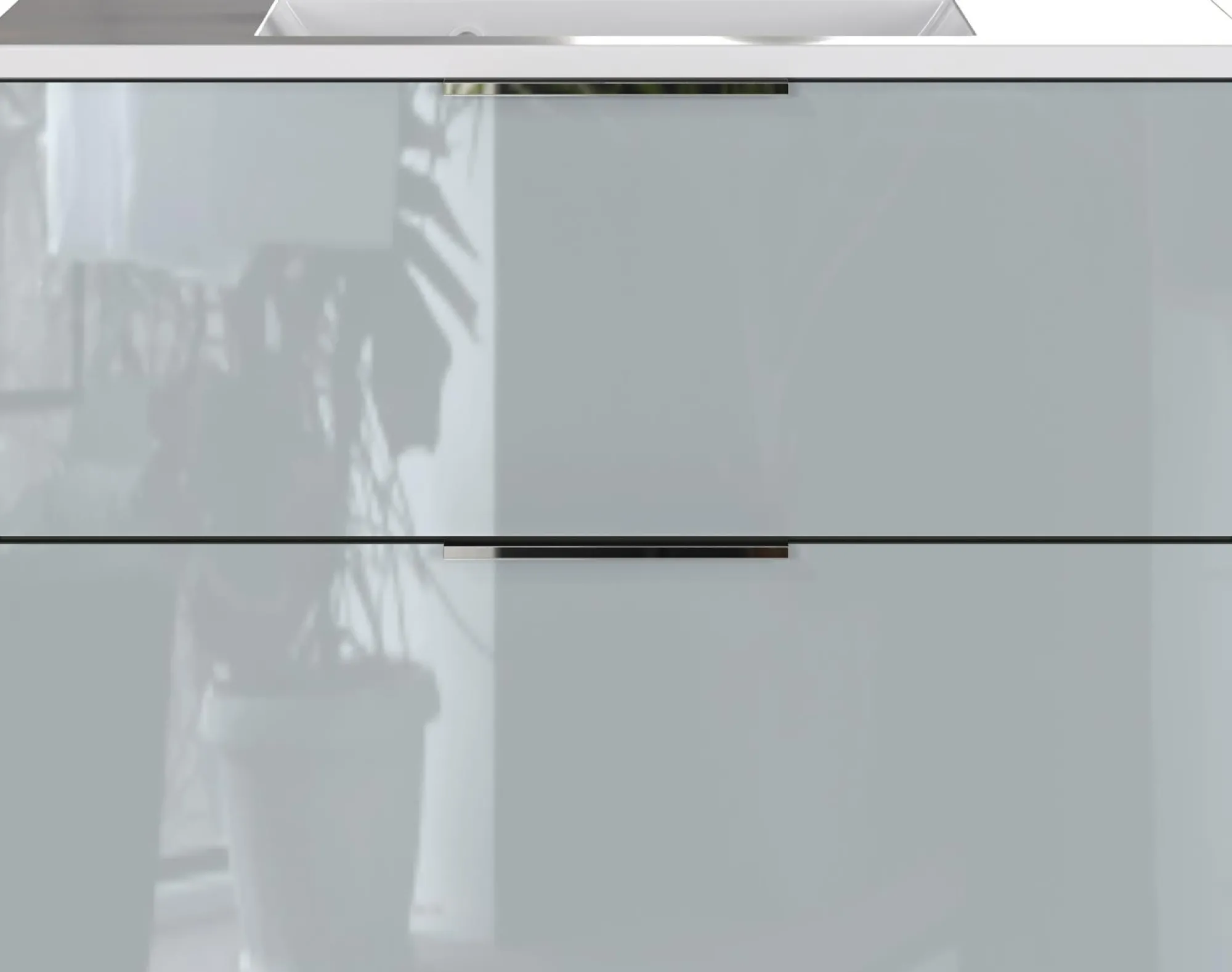 · Kratzfeste und widerstandsfähige Oberflächenbeschichtung. | Stoß- und schlagfeste Kanten. | Front(en) aus Glas. | Mineralguß-Waschbecken mit lackierter Beschichtung. | Schubladen schließen durch integrierten Dämpfer langsam, sanft und geräuschlos. | Mit Kantengriffen aus Metall. | Hängende Montage. | Umweltfreundlich, ohne Styropor verpackt. | Made in Germany.