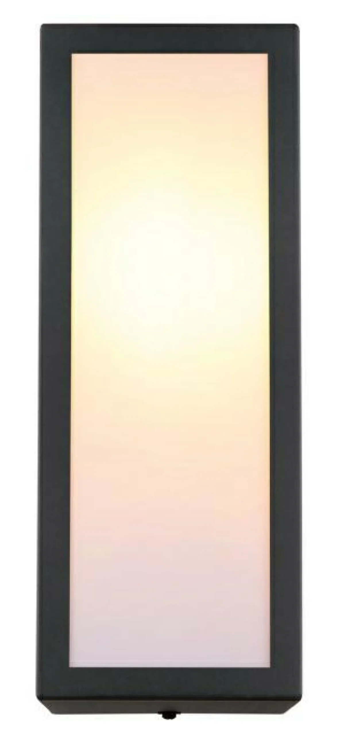 · Diese moderne Außenleuchte überzeugt durch tolles schlichtes Design aus Glas und Metall. Diese Leuchte in Schwarz besteht aus einem rechteckigen Metallkäfig (12x32cm) und einer schönen opalen Glaswand an jeder Seite. Die E27 Fassung ermöglicht Ihnen Lichtfarbe und Helligkeit bis zu einer maximalen Leitung von 60 Watt, selbst zu bestimmen. Der Schutzgrad IP44 gegen Spritzwasser sorgt für ein sorgenfreies Anbringen der Leuchte im Außenbereich.